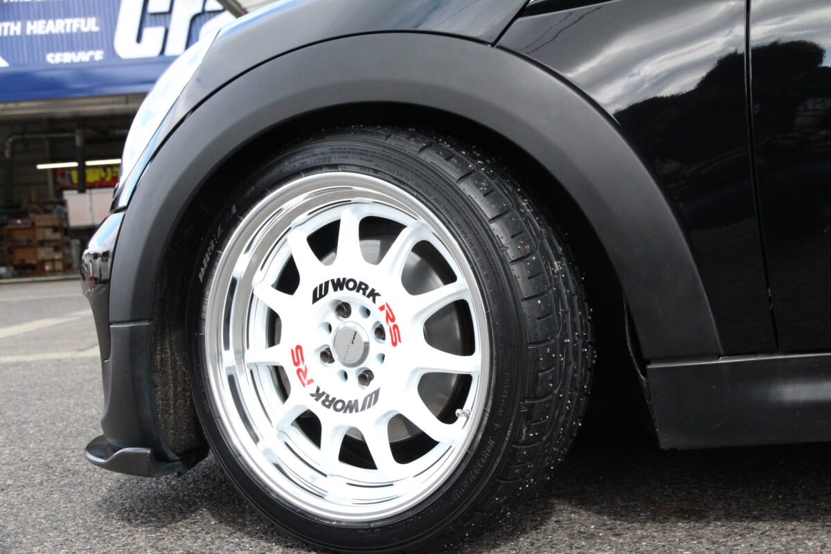 ミニクーパーのコンパクトな車格でもリム深度62mmを実現