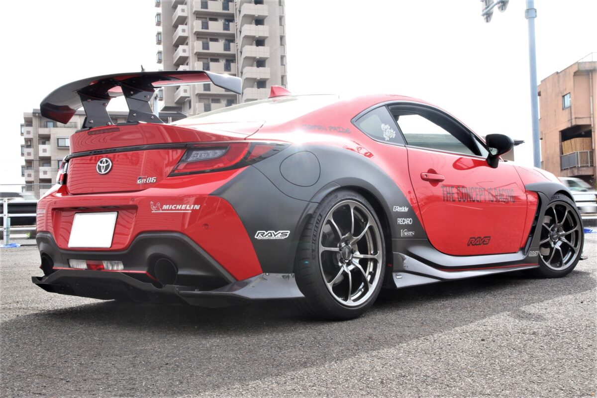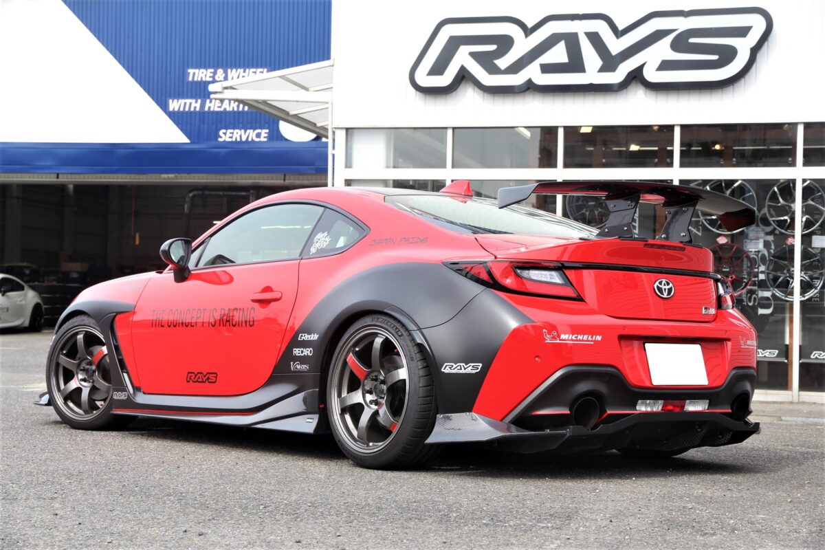 RAYSのデモカーGR86は左右でホイールが異なります。