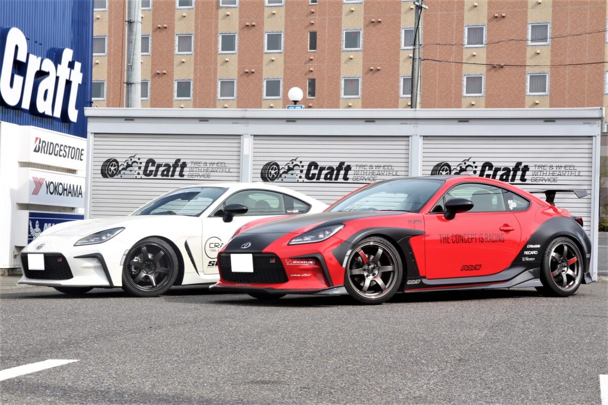 ■BRZ×RAYS VOLK RACING TE37SAGA S-Plus TA クラフトオリジナル   いつもありがとうございます!!クラフト厚木店・のりかずです!!   本日ご紹介するのは遠保からご相談いただきました、S様・BRZ。   タイヤとホイールのドレスアップをご依頼頂きました✨✨   気になるホイールは”クラフト”でしか購入できない数量限定のホイールなんですよ~✨     S様からご依頼いただいたホイールは”RAYS VOLK RACING TE37SAGA S-Plus TA クラフトオリジナルサイズ”。   こちらのホイールは大人気ホイールメーカー、”RAYS”さんにお願いをして作って頂いたクラフトでしか手に入らない数量限定のホイールです!!   また、クラフトで収集したデーターを元に車種専用オリジナルサイズやカラーを”RAYS”さんにお願いをしてクラフトでしか手に入らない数量限定ホイールを作ってもらっているんですよね✨✨   そして今回のホイールはGR86やBRZに向けた専用サイズになっています!!     ホイールカラーは”RAYS”さんからラインナップされているTE37SAGA S-Plus TIME ATTACK EDITIONの「ダッシュホワイト」になります!!   そしてホイールサイズは「9.0J-18インチ」。   ”RAYS”さんからラインナップされているGR86・BRZに向けたサイズには「9.0J」の設定がありません。   なぜ、”クラフトオリジナルTE37”は「9.0J」にしたのか気になりますよね??(笑)     それは、「FACE3」と出ヅラへの拘り。   RAYSさんのカタログやHPを見るとGR86・BRZに向けたサイズは「8.5J-18インチ FACE2」「9.5J-18インチ FACE3」となっています。   この「FACE3」を装着したいとなると「9.5J」を選ばなければいけませんでした。   「9.5J」はGR86・BRZにとってかなりのチューナーサイズでもあります。   そしてクラフトがチョイスした「9.0J」一見まぁまぁのチューナーサイズに感じますよね??   しかし、クラフトがチョイスした「9.0J」は「8.5J」とほぼ同じ出ヅラとなるようセッティングしているんですよね!!   ホイールには”インチ””太さ”の他に”インセット”と言うものがありますよね??   この”インセット”を調整したことによって「FACE3」に加え「8.5J」とほぼ同じ出ヅラへ調整できる事ができたんです✨✨     今回のクルマは車高調でローダウンをされています。   ただ、出ヅラ重視でセッティングしたいというオーナー様のご希望もありアライメント調整で微調整をしました!!   そして、完成したのが上記の出ヅラ!!   ”ツライチ”に仕上がっていますよね!!   皆様もこういったオリジナルホイールで仕上がてみませんか!!   ご相談お待ちしております!!     S様、この度はクラフトをご利用いただきありがとうございました!!   そして遠保からのご相談に感謝です!!   やはりTE37の「FACE3」はかっこいいですよね✨✨   クラフトオリジナルホイールを選んで頂きありがとうございました!!   またのご利用お待ちしております!!   管理番号:0412603081003