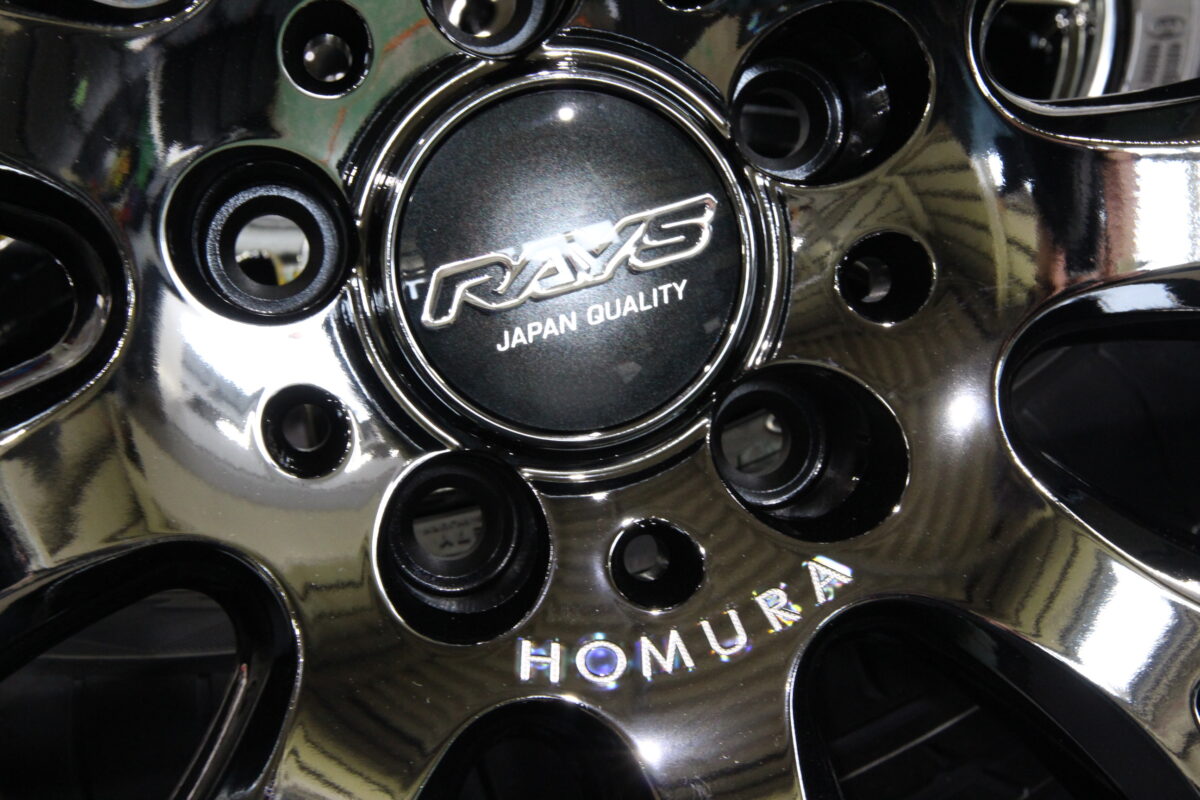 今回のモデルは新設定のセンターキャップが付属されます。このホイールカラーは「HOMURA」ロゴが