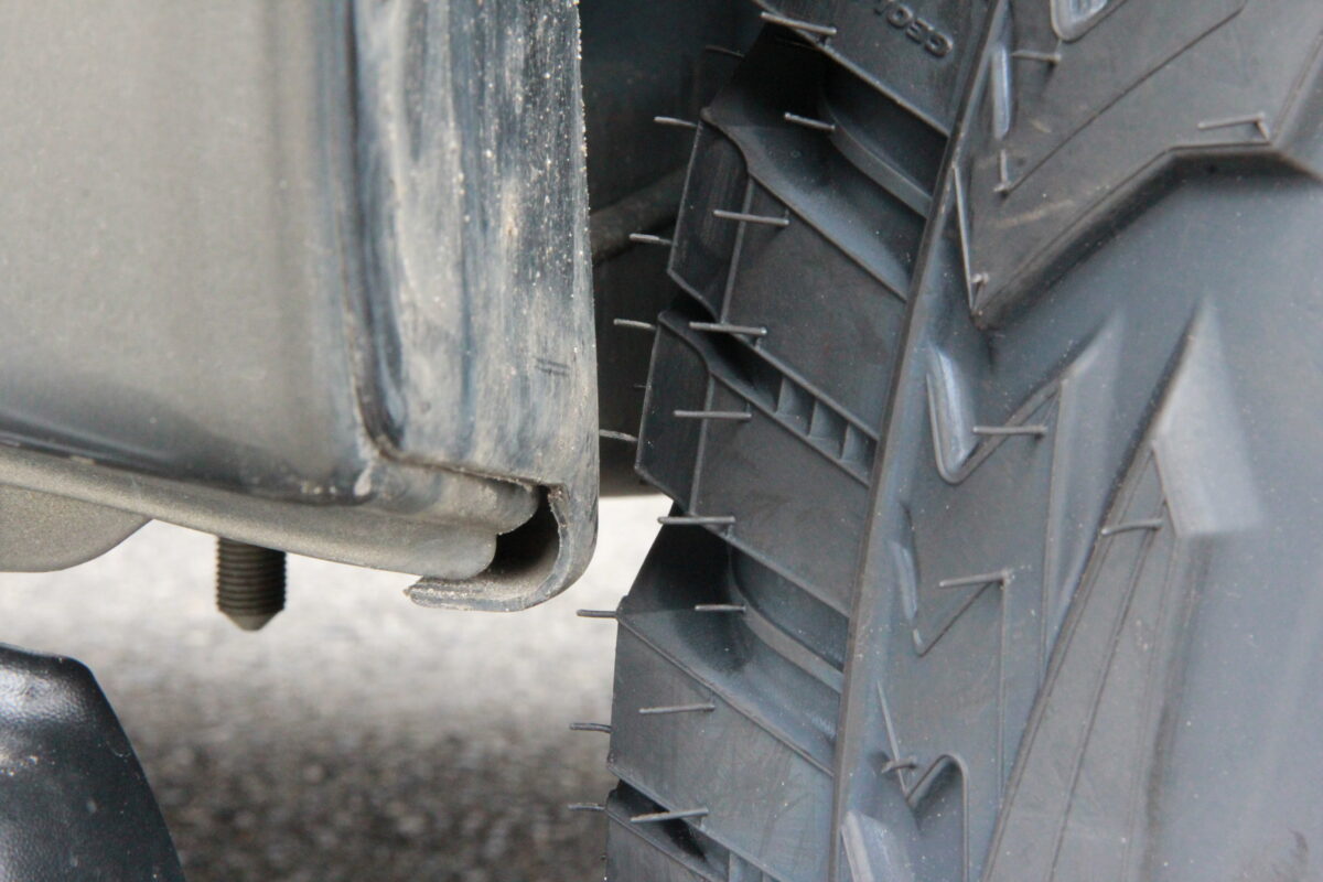 マッドフラップを取り外していてもかなりタイトなクリアランスです。