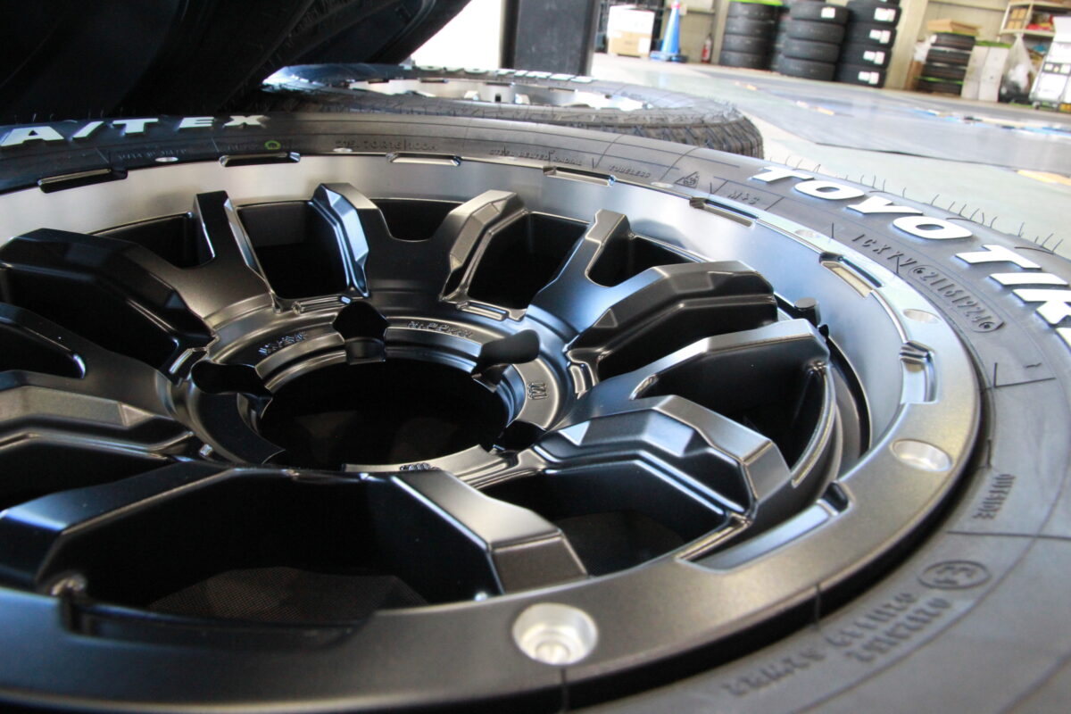 無骨なステルスカラーに加えてオフロード指数の高いデザインのホイールを組み合わせ