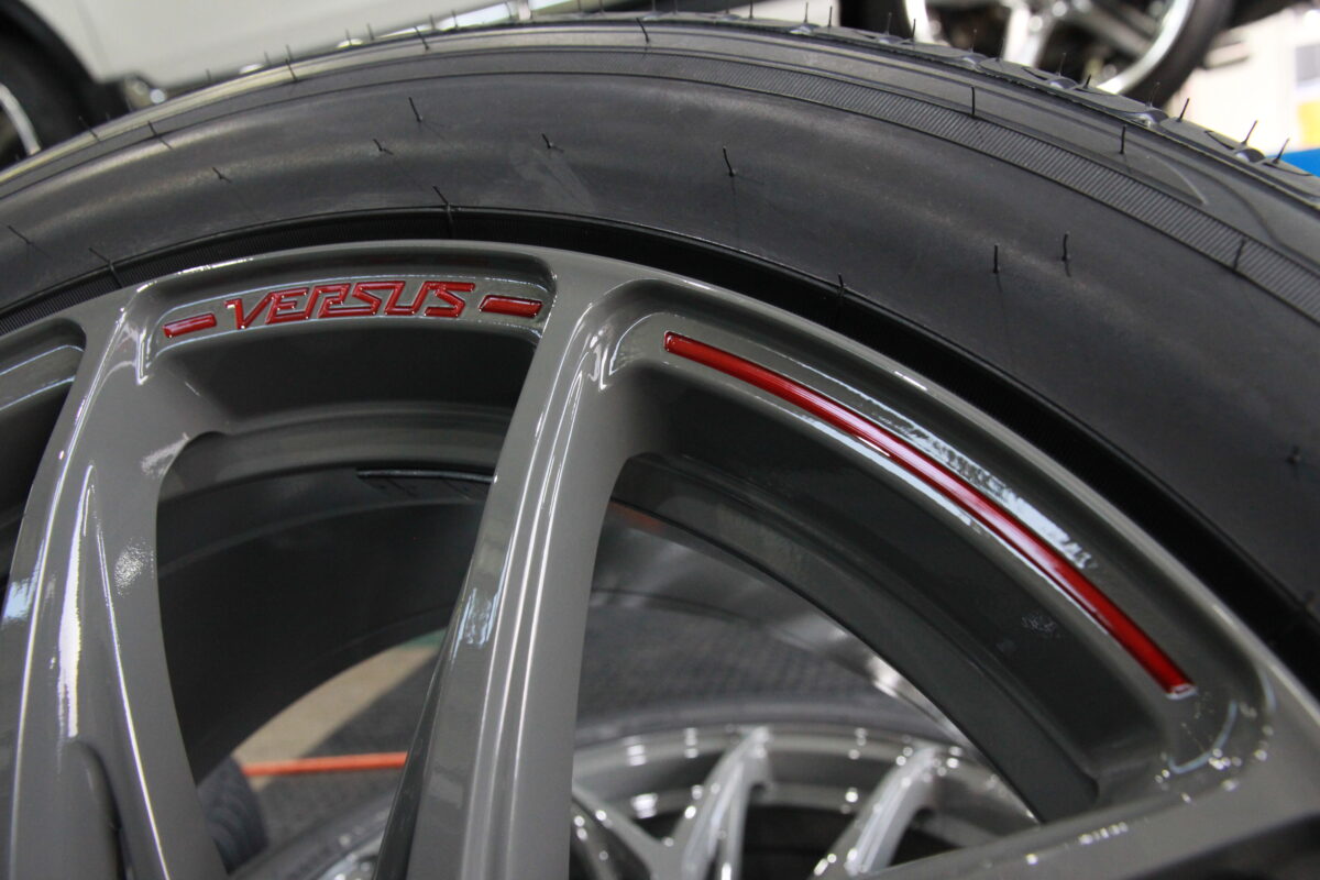 ホイールカラーとホイールに刻まれた赤文字で