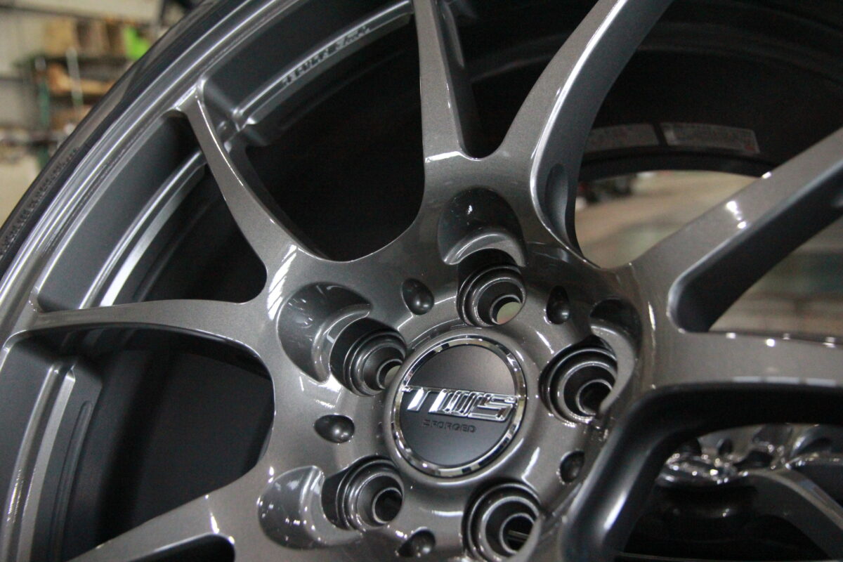 お車全体の統一感を出すために選ばれたホイールカラーはグロスガンメタ。