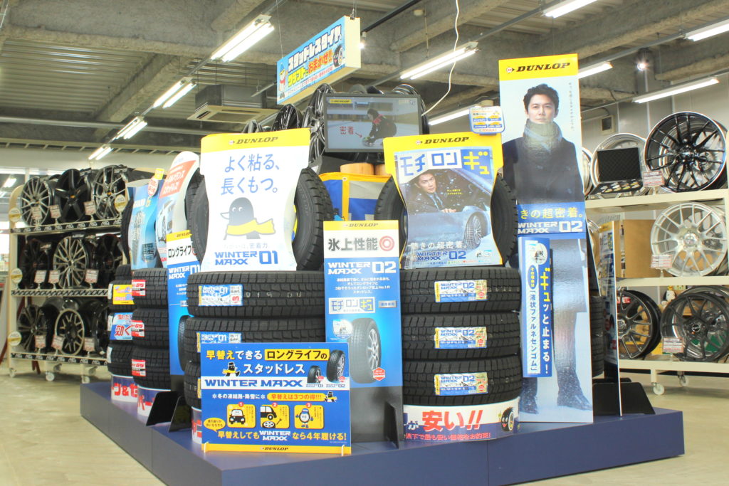 入って正面はモチロンギュのダンロップ。