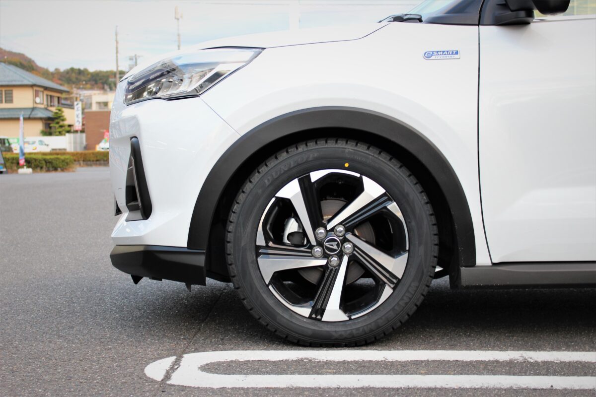 ライズ、ロッキーのオフ仕様。 外径アップで気になる干渉や ツラ具合などを紐解きます! 鈴鹿店の小林です。 色んな車種のオフ系仕様が流行っています。 インチダウンでグッドリッチやオープンカントリーを 履いてホワイトレターをキメる。 ライズ、ロッキーはコンパクト規格筆頭の注目車種 じゃないでしょうか? 純正がコレになるんです! ワクワクしますよね~。 とは言えなかなか情報が出回っていない現実。 皆さん心配されるのが大きめのタイヤを履いて 干渉しないかどうか?突出しないかどうか? その疑問は「タイヤサイズをどこまで上げるか」 によって大きく変わります。 今回は純正から1サイズアップに留めることで 心配をオールクリアに。 フロントフェンダーアーチ前方はこんな感じ。 フロントフェンダーアーチ後方はこんな感じ。 リアは特に問題なさそうなので ハンドルを切るフロントを重点的に チェックしていきました。 インナーは思ったより狭いかな? それでもセダンやミニバンのフロントに 10Jを履くようなタイトさではありませんね。 問題はなさそうですが、更に外径を上げると なると苦しいカナ? ハンドル全切りも問題無し。 日常使用での少々の傾斜なら 当たることはないでしょう。 こちらもオールクリア! Wheel:ロディオドライブ7M MONO 16インチ マットスモークポリッシュ Tire:トーヨー オープンカントリーRT 足元一新でノーマル車高でも さすがの迫力です。 ホワイトレターがあるだけで 一気にオフ感が出ますよね。 フェンダーへの干渉、突出もありませんので ライトなカスタムユーザーでも安心して 履いていただける仕様です。 オープンカントリーRTといえば ラギットテレインからなる特徴的な ブロックパターン。 アウトドアが似合うスタイルですね! 16インチ4穴でライズ・ロッキーを 狙ったロディオドライブも この仕様には外せないアイテムセレクト。 主役はタイヤとは言え、その雰囲気に合った ホイールを選ぶことは大前提なのです。 スゴく売れている車ですので これからご相談が増えていきそうな 4×4スタイルですね。 スゴく参考になる一台だと思います。 ありがとうございました!