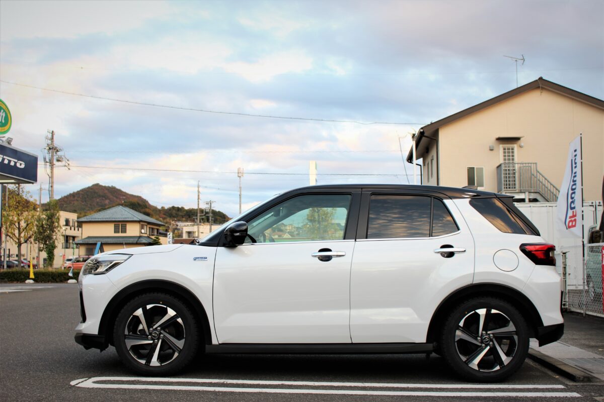 ライズのオフ系カスタマイズが流行ってます!! オールテレーンのホワイトレタータイヤを使用しました   クラフト知立店 白井です   本日のご来店はオフカスタマイズにはピッタリなベージュのライズ タイヤ・ホイールの交換でオフ感強めの仕様にしていきます   ホイールにはスポーツシーンでもお馴染みの“エモーション” 中でも太目の7本スポークデザインの“T7R” 太目のスポークデザインホイールは A/TやM/Tタイヤとの組み合わせも◎   組み合わせるタイヤは“トーヨー オープンカントリーAT EX” ブラックレターの“オープンカントリーAT”のホワイトレターVer. サイズ設定は少なめですがライズ/ロッキーの純正16inchサイズの “195/65R16”がラインナップしているんです 無理なサイズアップをしなくてもホワイトレターが選択できるのは嬉しいポイントです   トレッドはゴツゴツしすぎないオールテレーンパターン オン/オフのそれぞれのシーンで性能を発揮するタイヤ ロードノイズの低減にも意識を向けたタイヤで オンロードでの使用が多いという方にもオススメのA/Tタイヤです   ・ビフォー   ・アフター 純正17インチより1インチのインチダウンでセッティング インチダウンによってタイヤの厚みが増しよりオフ感のある風貌に   ホイール:ワーク エモーションT7R サイズ:16インチ カラー:アッシュドチタン タイヤ:トーヨー オープンカントリーA/T EX   フローフォーミングで形成されるエモーションは軽量で高剛性 重くなりがちなブロックタイヤでは軽量モデルのホイールと組み合わせることがしばしば   ダーク系のブロンズはオフロードカスタムでは定番 ホワイトレター&ブロックタイヤとの相性は抜群です   この度はクラフト知立店をご利用いただきありがとうございます     ライズ/ロッキーのカスタマイズはお任せください ワーク買うならクラフト知立店へ