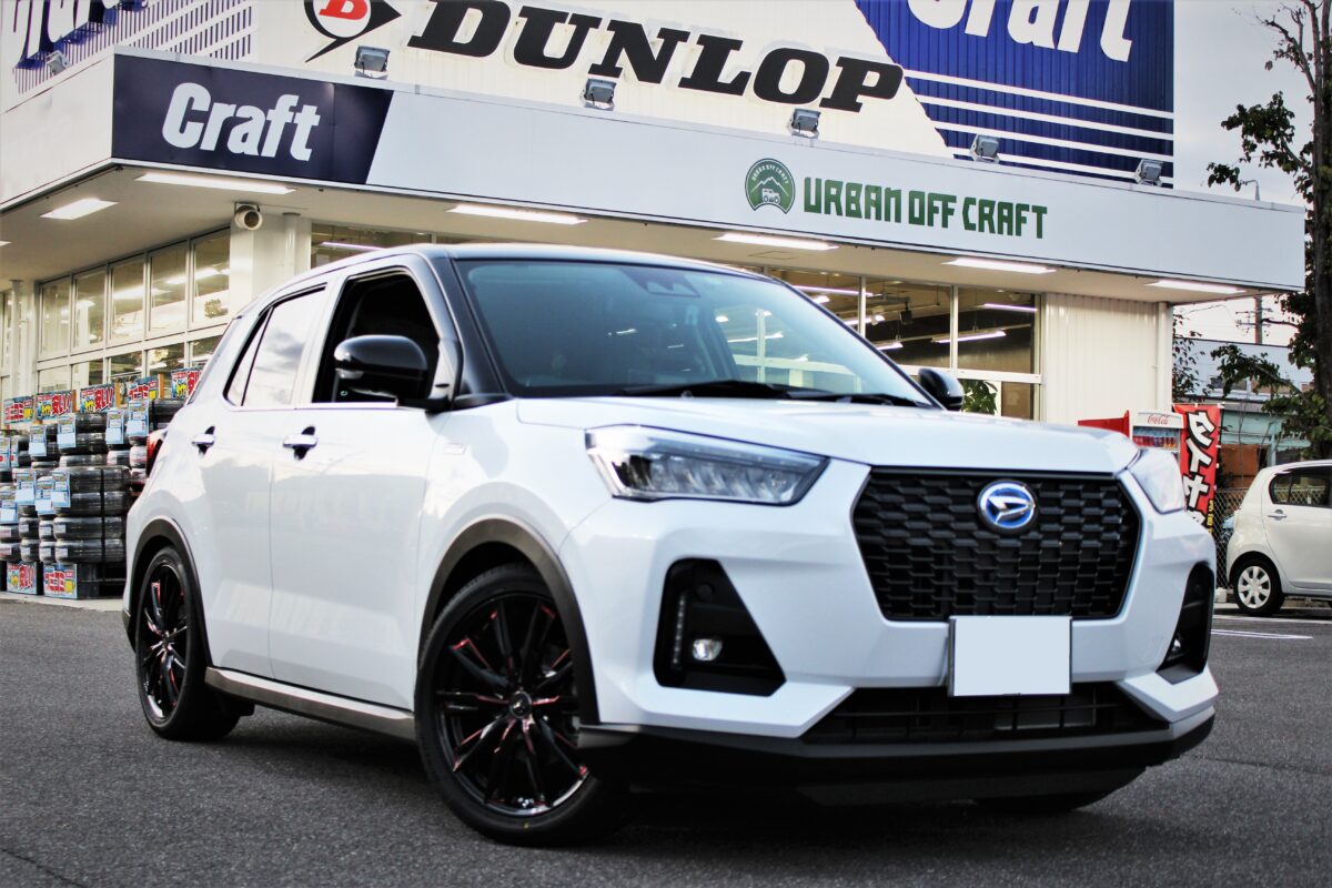 ライズのオフ系カスタム。DEANクロスカントリーとオプカンRT、そしてUP210でフルカスタム!!     ライズのカスタムって色々です。 その中でもオフ系カスタムは最近多くご依頼頂いているのですが、 本日はそんなライズのオフ系カスタムをご紹介してまいります。     タイヤ・ホイールのご変更が圧倒的に多いライズカスタムですが、 今回はリフトアップもお任せ頂きました。 ライズのリフトアップパーツ自体そんなに多くはないのですが、 今回はリフトアップの中で施工実績も最も多い タナベのUP210でアゲていきます。     新車なんでタイヤハウスがとても綺麗です。 車高が上がった分、 赤いコイルがフェンダーからチラ見出来るのも リフトアップの楽しみの一つです。     続いてホイールを入れていきます。 お選び頂いたホイールは四駆ホイールでも珍しい クラシカルデザインのディーン・クロスカントリーです。   タイヤは人気のオプカンRTと合わせ、 ホワイトレターで飾り付けます。     最後にアライメントで仕上げていきます。 車高が上がるとアライメントも大きくズレる事が多いので、 しっかりと調整をかけていきます。     さぁ、待ちに待った完成です。 冒頭でもお伝えした様に、 ライズでリフトアップされているケースって少ないのですが、 やっぱりアゲた時のカッコよさは一際です。     タイヤサイズも車高に合わせ少し変更。 今回は215/65R16といった大き目なタイヤサイズを入れています。 オフ系カスタムにおいてタイヤ外形アップはマストですが、 大き過ぎても干渉リスクが出てきますので、 タイヤサイズでお困りの方がいましたら是非とも当店までご相談ください。     やっぱりカーカスタムは、 車高とタイヤ・ホイールが大事なんだと 改めて気付かされました。     【SPEC】 ホイール:DEAN クロスカントリー サイズ:16インチ カラー:マットブラック タイヤ:TOYO オープンカントリーRT 足回り:TANABE UP210     カスタムをするなら人と差を付けたいのは当たり前。 一手間を煮詰めたいならクラフト一宮店まで。 それではまた次回のブログもお楽しみに。
