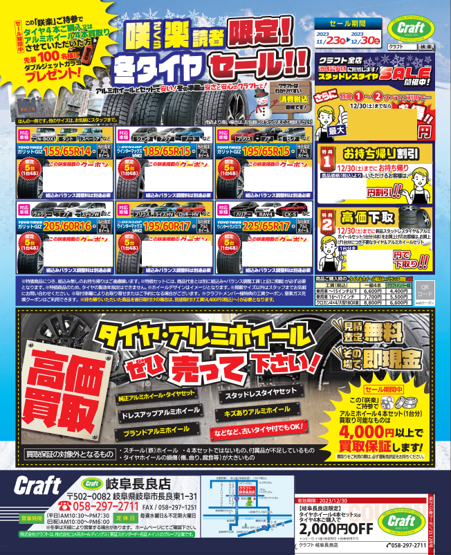 岐阜咲楽(さくら)12月号に読者限定!オトクなスタッドレスセット&クーポンを掲載中!