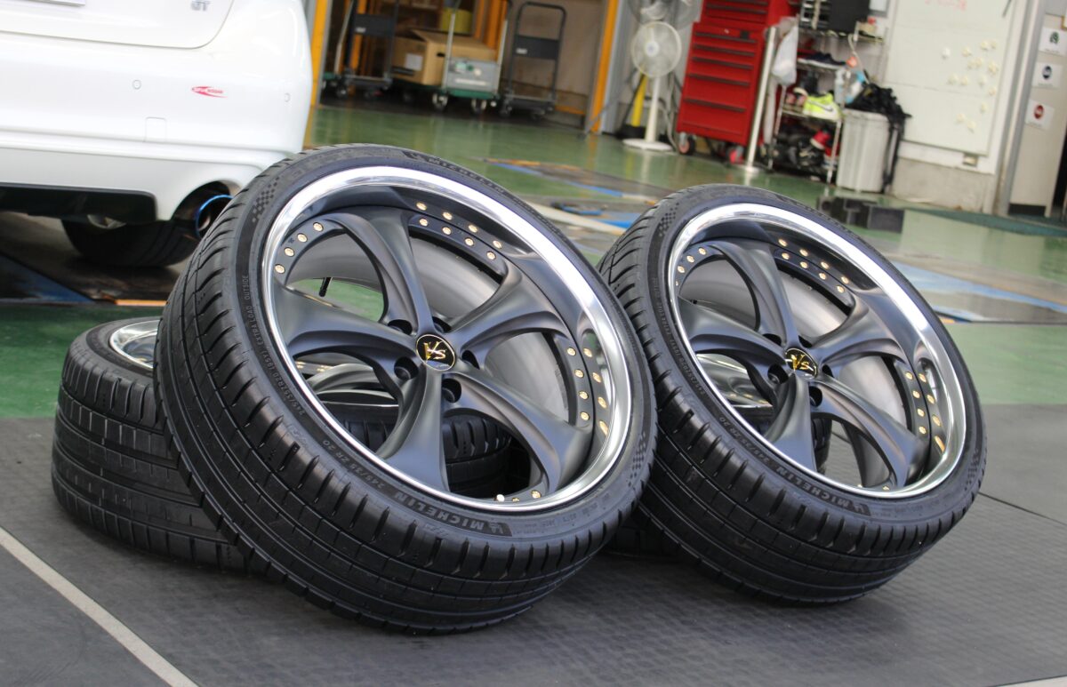 ホイールの造形美と、最新の高性能タイヤによる機能美。