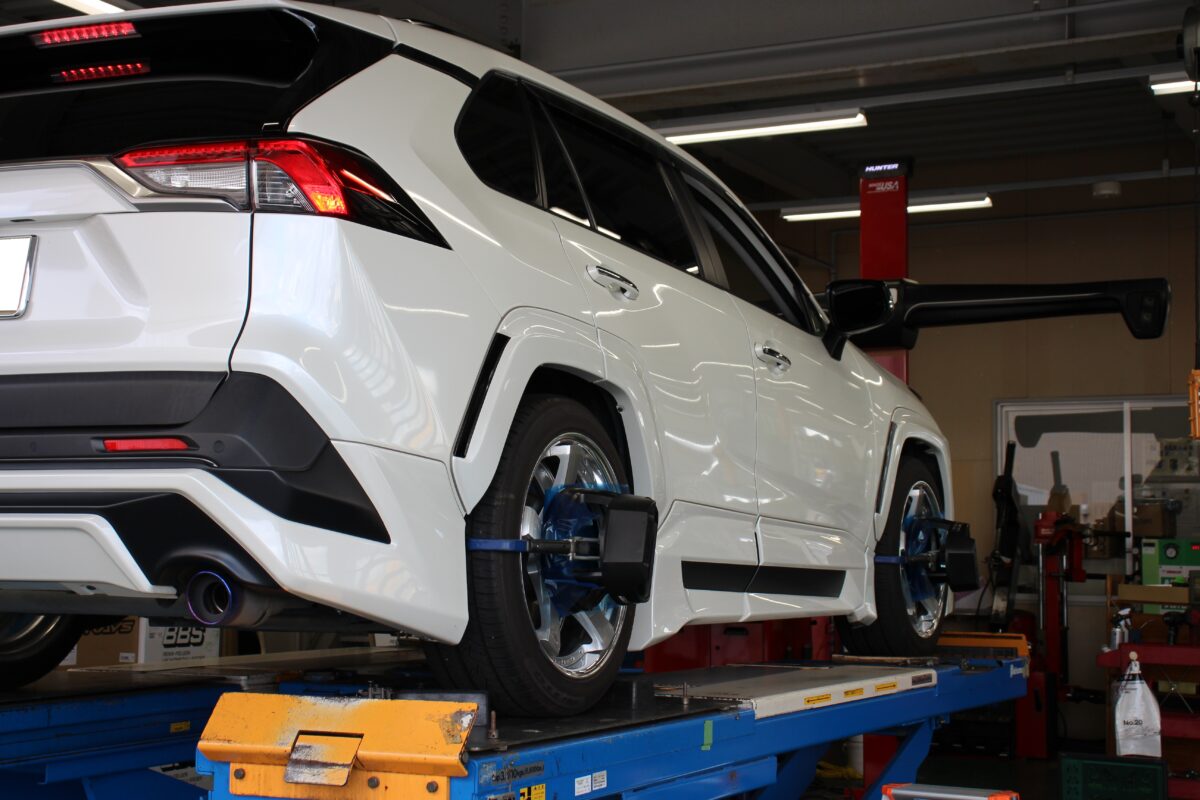 ローダウンも大得意な当店。今回はRAV4をシャコタンスタイルに仕上げます