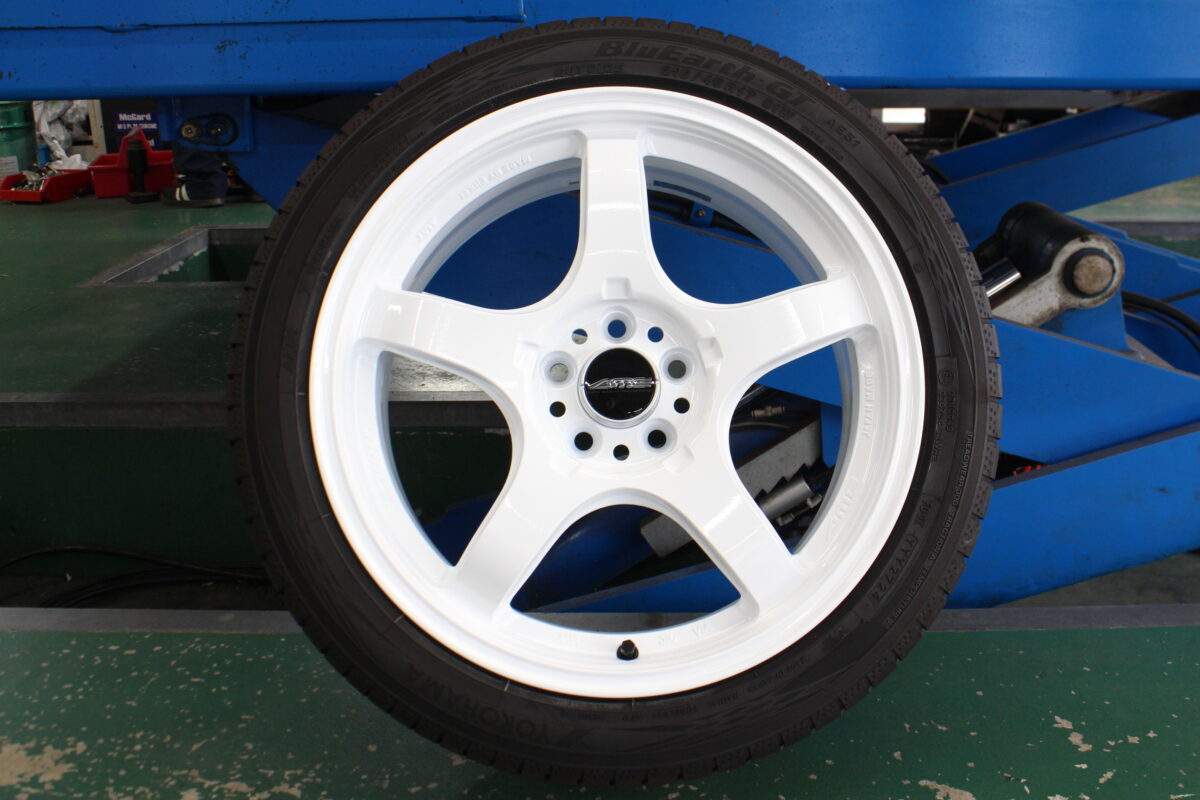 純正ではなかなか無いホワイトカラーのホイールならカスタム感ある一台へタイヤとのメリハリもつくので口径感アップにもつながるカラーリング