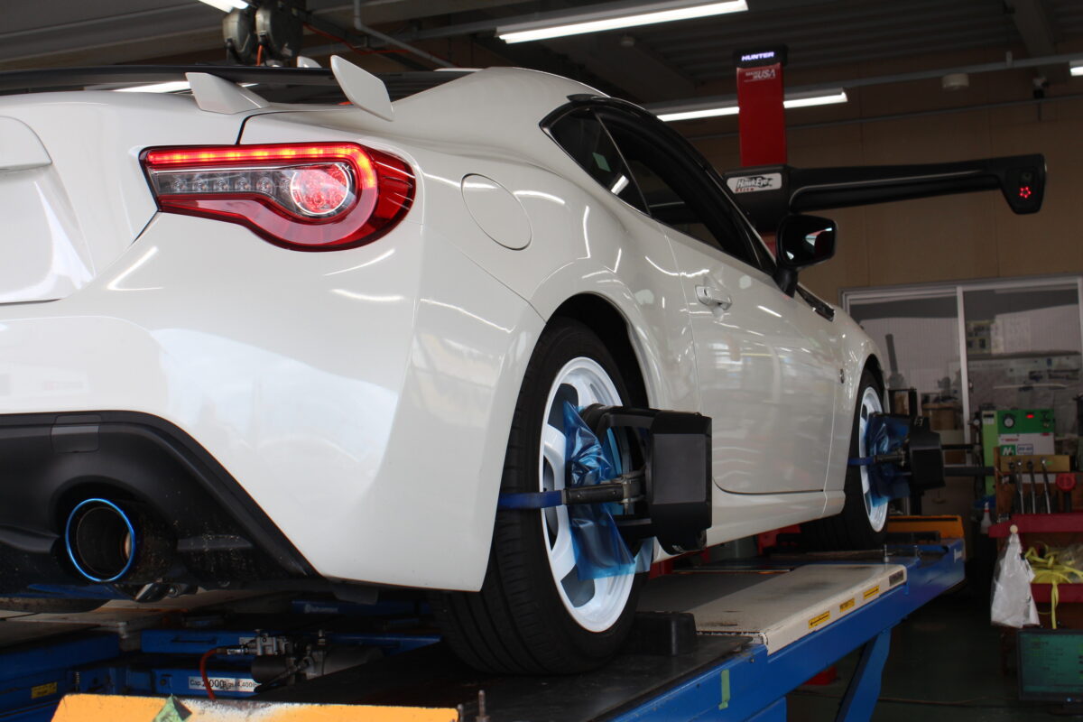 サスペンション交換の際は必須となる作業がアライメント測定・調整ローダウンによるアライメントのズレは必至