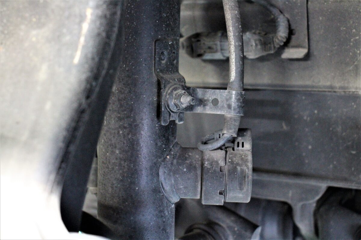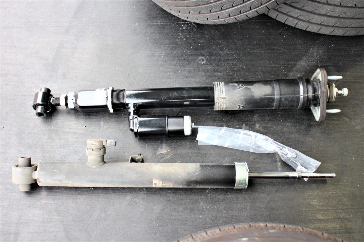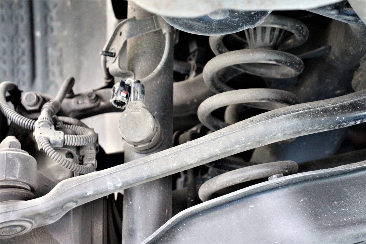 純正フロントショックの根元辺りにこのような配線が繋がっており電子制御でサスペンションの硬さを調整してくれてます。