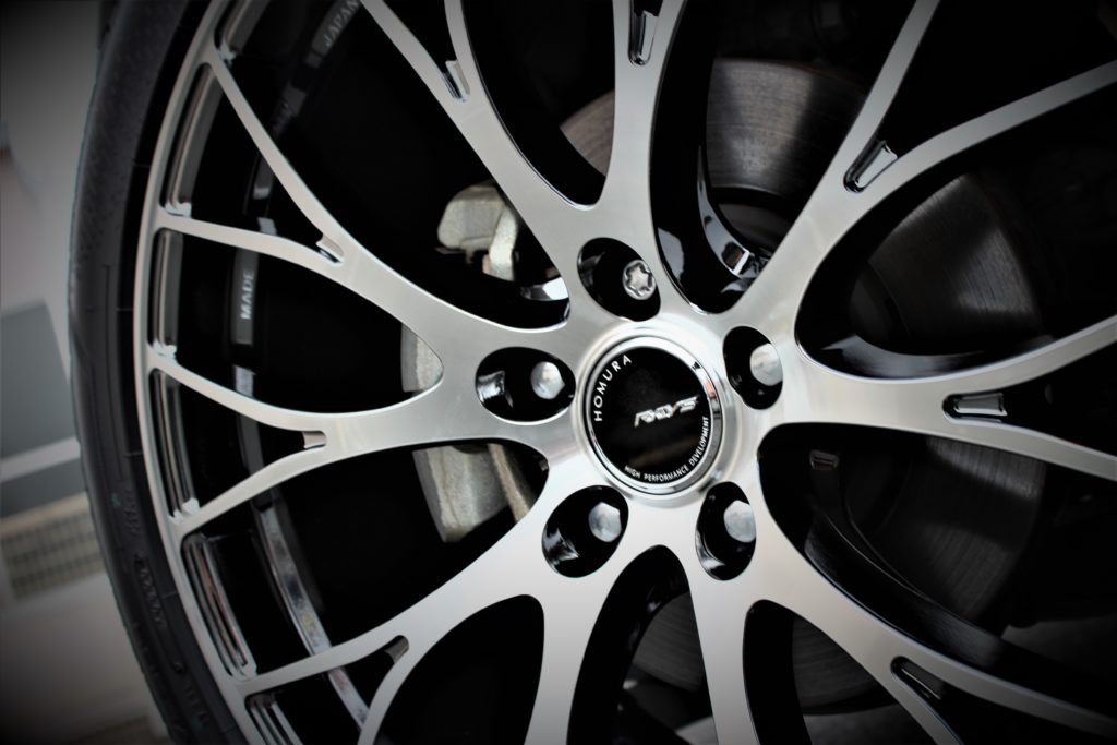 ホイールのカラーはHX「レイズブラックメタルコート/ダイヤモンドカット/マシニング」