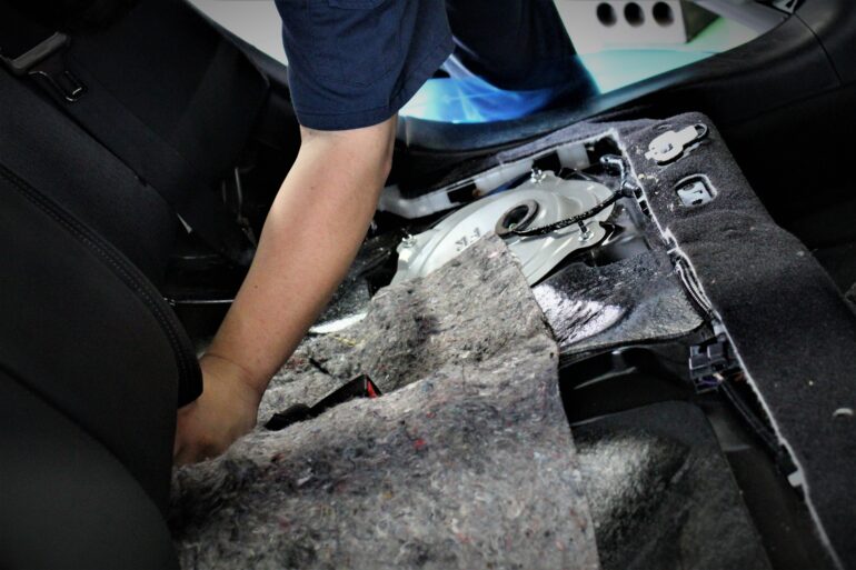 フーガの場合、取り付けの際にリアシートの脱着が必要なのでちょっと大変ですが