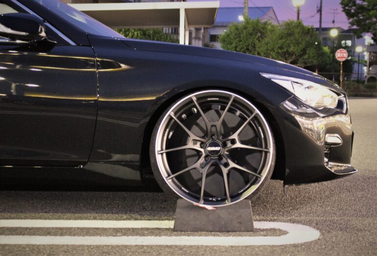 車高を下げたことによりキャンバーが付きホイールも