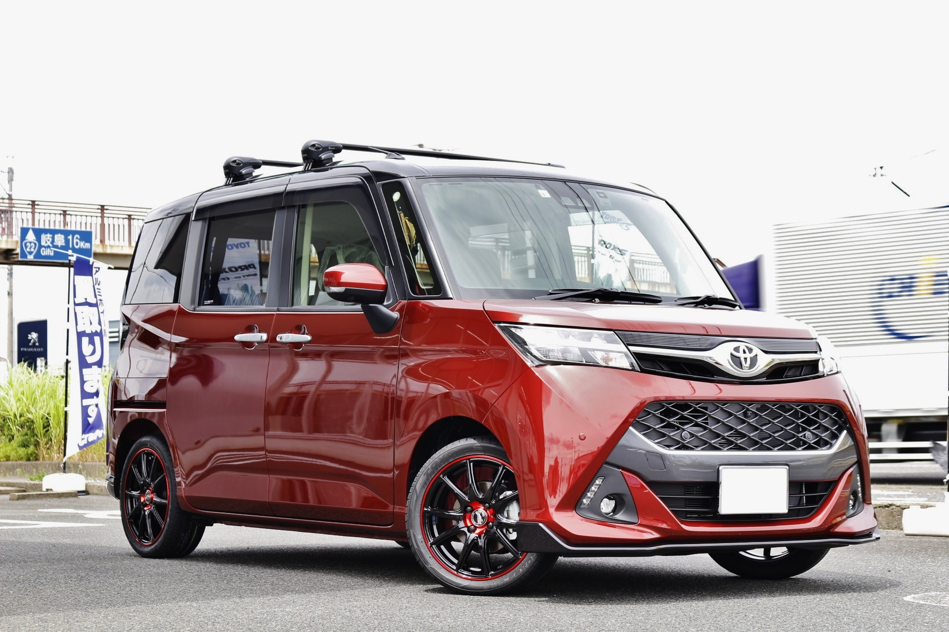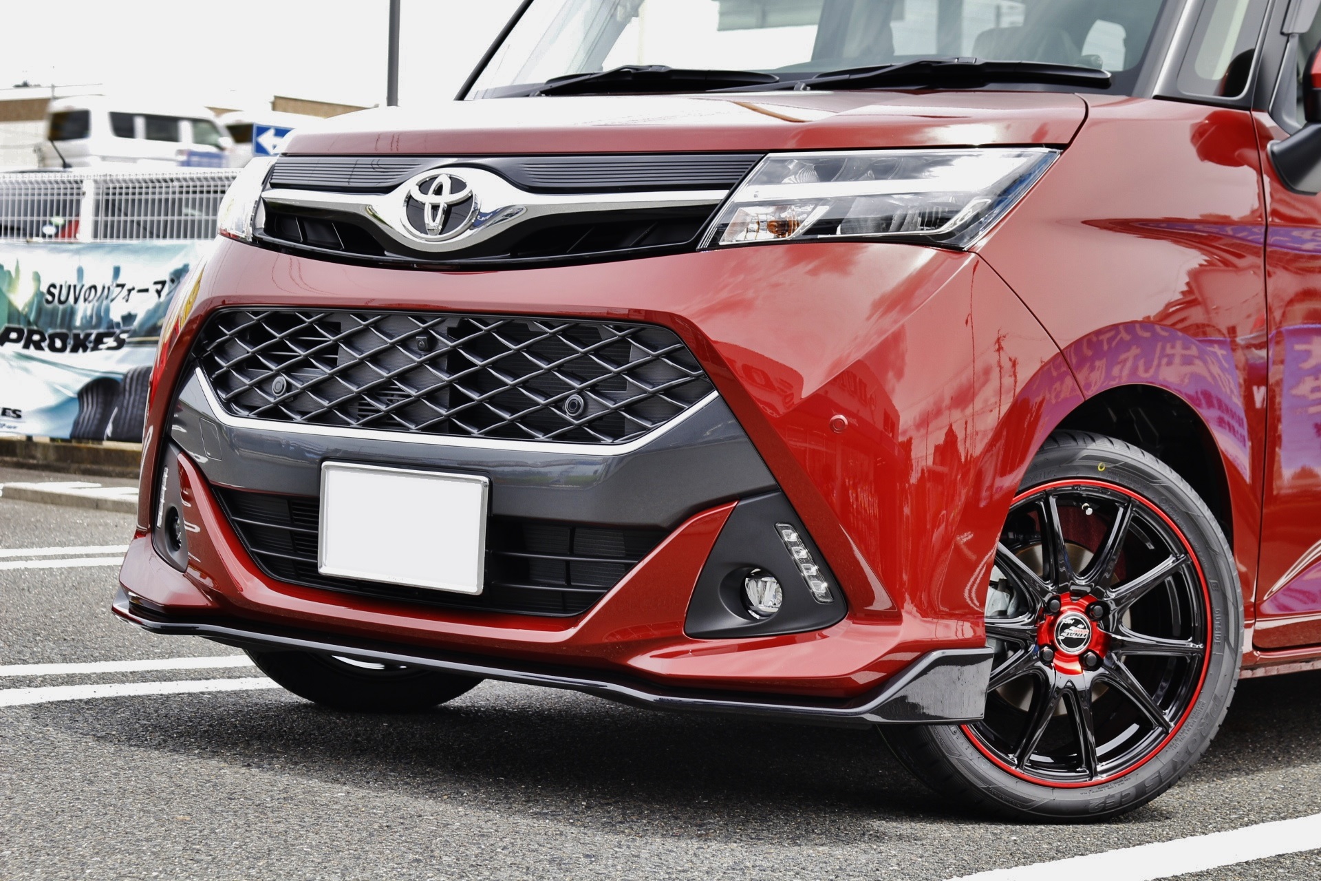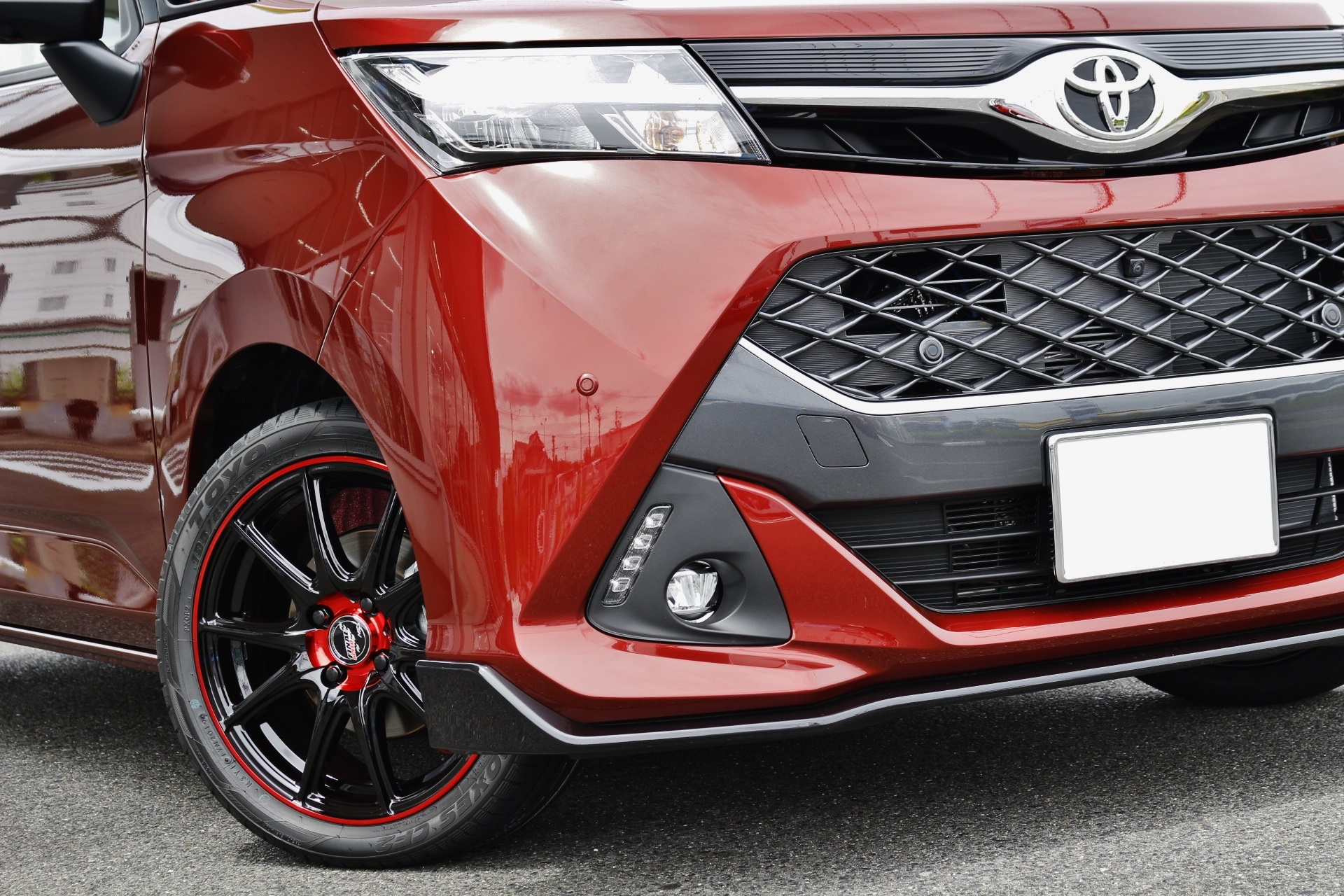 レッド系のボディカラーにはブラック系のホイールが似合います。