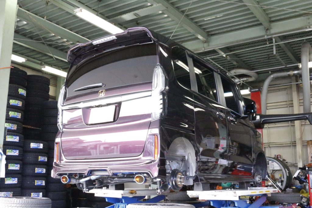 JF3 新型N-BOX を シャコタン化!車高調 と マフラー で トータルカスタム 。