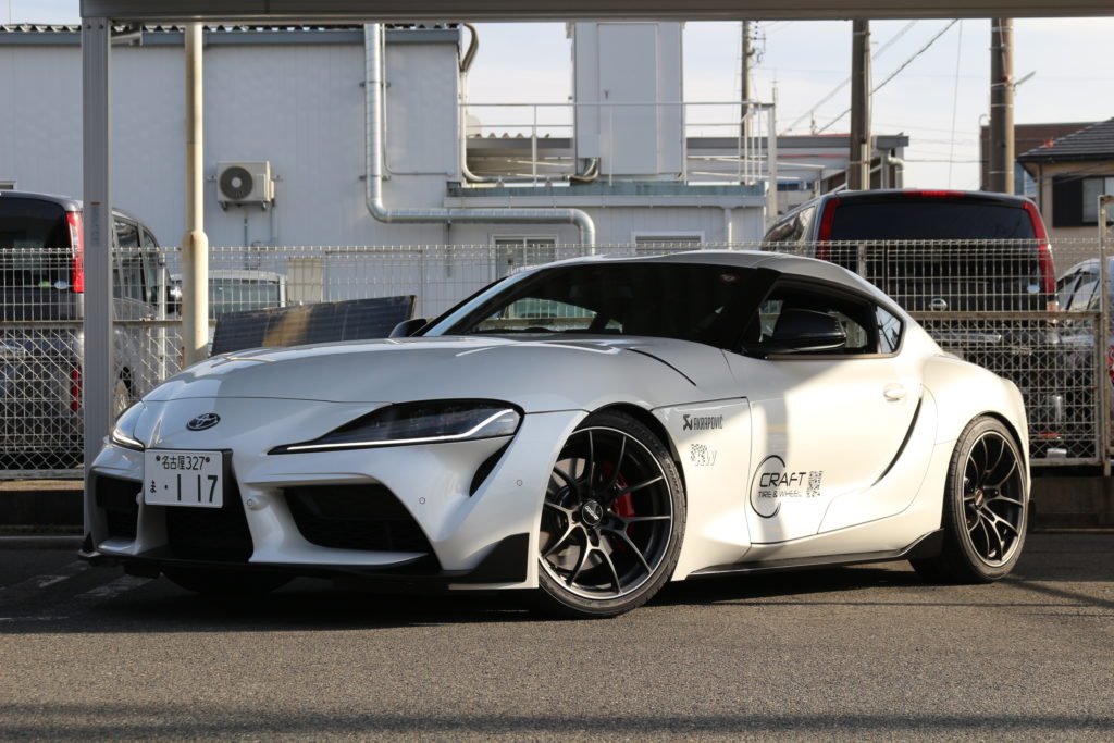 ■GRスープラ×HKS ハイパーマックスツーリング   いつもありがとうございます!!クラフト厚木店・のりかずです!   本日ご紹介していくのはK様・GRスープラ。   最初に施工するのはローダウンから!!   タイヤ・ホイールも一緒にご注文いただきましたが、納期がかなり掛かっているので先にローダウンで形を作っていきますよ!     取り付けていくアイテムは「HKS ハイパーマックスツーリング」となります!!   GRスープラではよく取り付けられるアイテムではないでしょうか!   純正の電子制御ショックアブソーバーを活かしつつローダウンを可能とするアイテム!しかも車高調整が可能ともなっています!   車高調整が可能となればこれを最大限に活用するほかないですよね!?     こちらは施工する前の状態。     そしてこちらが施工後の一枚。   車高の調整ができる機能を活かして前後のバランスを重視して車高を決めていきました!   今回、形を決めるにあたってできるだけ前後のフェンダーとタイヤの隙間を均等に揃える事が目標となります!!   写真をご覧いただいてもわかる通り前後でバランスよく仕上がっていますよね♪   これは車高の調整ができる機能があったからこそできるスタイルなんです♪     今回セッティングしたダウン量はダウンスプリングのみではできません。   文頭にも記載しましたが、車高の調整ができるアジャスターと言うアイテムが付いているおかげで、車高の調整できる幅が増えています。   なので、万が一「ダウンスプリングを交換したけど思っていた車高と違う。」と言ったことになっても今回のキットであれば、車高の調整ができるのでかなり便利!!     そして写真を比較して気づいた方もいるはずです。   ローダウンを行うだけでもかなり印象が変わります✨   もともと純正でも車高が低めではあるので、純正車高でも満足してしまいそうですが、このように比較して見ると車高を下げたくなりませんか??(笑)   僕は絶対に下げたくなりますね(笑)   ■before   ■after   最後にアライメント調整を行って完了となります!   ちなみにGRスープラのリヤはキャンバーの調整ができるクルマなので、ホイールサイズを拘って作る時に便利です!   今回はあまり寝かせずにフロントに合わせてキャンバー角を調整しました!   ご購入いただいているホイールも今回のセッティングでちょうどいい出ヅラになってくれそうなので、かなりワクワクしています!(笑)   それでは沢山のご相談お待ちしております!     K様この度はクラフトをご利用いただきありがとうございました!!   車高を「前後でバランスよく」を一番にセッティングいたしましたが、バッチリ仕上がったのではないでしょうか!   ホイールの納期はまだまだかかりますが楽しみにお待ちくださいね!   それでは楽しいドライブをお過ごしください!!   管理番号:0412511151009