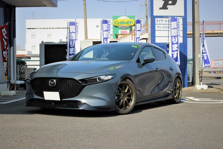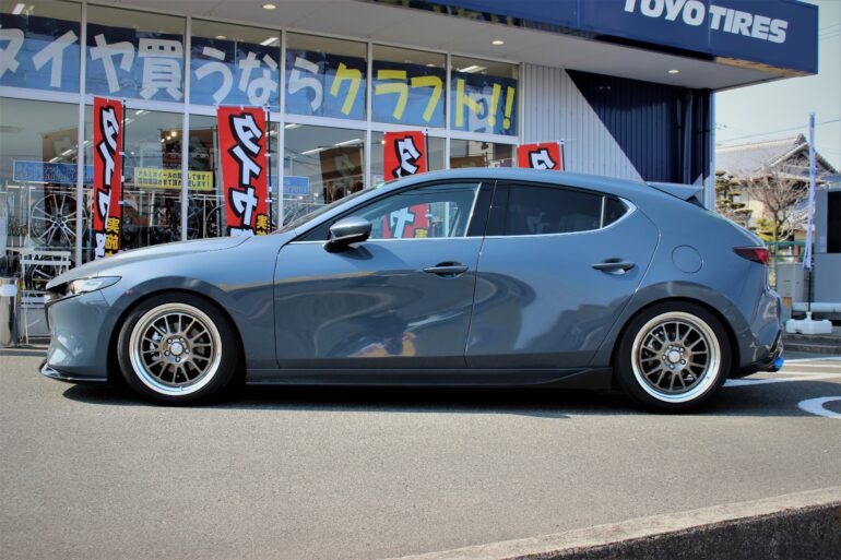 シャコタン マツダ3にWORK シーカーFXでツライチ化&オプションカラーで魅せる!!