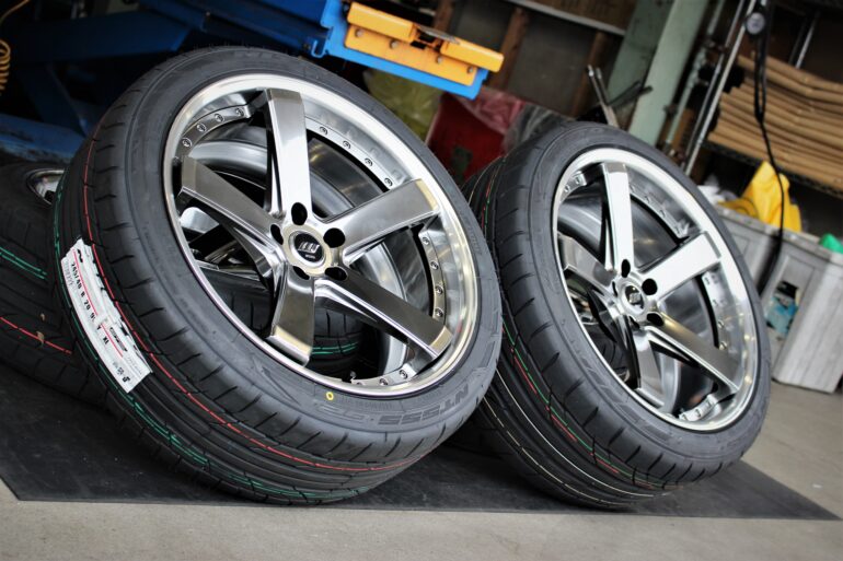 タイヤサイズをシビアにツメる!フーガのフロントに255履き慣行!