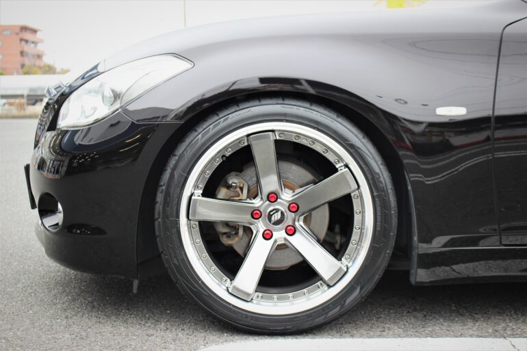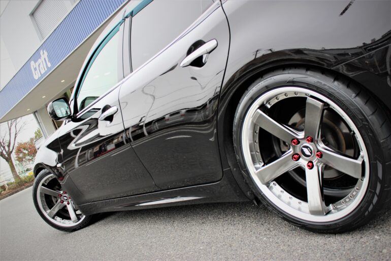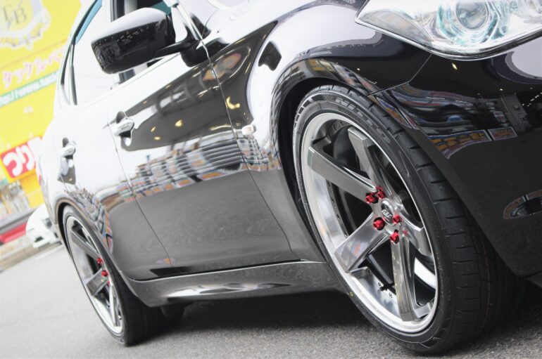 Y51フーガにWORK ジーストSTXの20インチを装着しました。     本日はフーガのご紹介です。 当然ですがマルチホイールといえば WORKと思い浮かべる方も多いと思います。 今回はそんなWORKの2ピースホイール、 ジーストSTXの20インチのマットブラックカラーを装着しました。     2ピースホイールって今更聞けないけど、 どういったホイールなの?と思われている方も少なくはないかと。   まず2ピースホイールというのは、 簡単に説明するとデザイン部分(ディスク)と、 筒になっている部分(リム)が元々別々となていて オーダー時にミリ単位で組み合わせる事が出来るホイールの事です。     今回はフロント9.0J、リア10.5Jといった 日産のセダンらしい飛び抜けた太めのリム幅に合わせ 実車測定で割り出したサイズを装着頂きました。 絶妙なツライチ加減でカッコよく仕上がりました。     魅力的なオプション設定も2ピースホイールの利点です。 今回は光沢あるバフアルマイトリムから カットアルマイトにリムをアレンジ。 更にブラックピアスボルトや、 ブラックエアバルブの追加オプションを使用。     オプションを駆使して、 個性を出せるのも2ピースホイールの魅力の一つです。 ツライチをしっかりと狙っていけるのだけでは無いんです。 せっかく新しいホイールを履くなら、 色々拘ってみるのも楽しみの一つです。     ミリ単位でツラを追え、 多彩なカラーラインナップから愛車に合う色を選べ、 細かなオプションで個性を出せる。 カスタムの楽しさが2ピースホイールには詰まっています。 気になった方は是非ともクラフト一宮店まで。 それではまた次回のブログもお楽しみに。   0042412241002