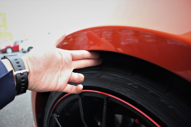 86ツライチ履きにRAYSグラムライツ57CR 9.5Jと235幅の組み合わせ