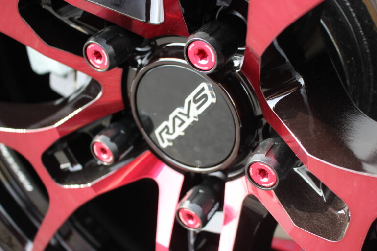 ナットはRAYSのフォーミュラナット(FNⅡ)を取り付け、