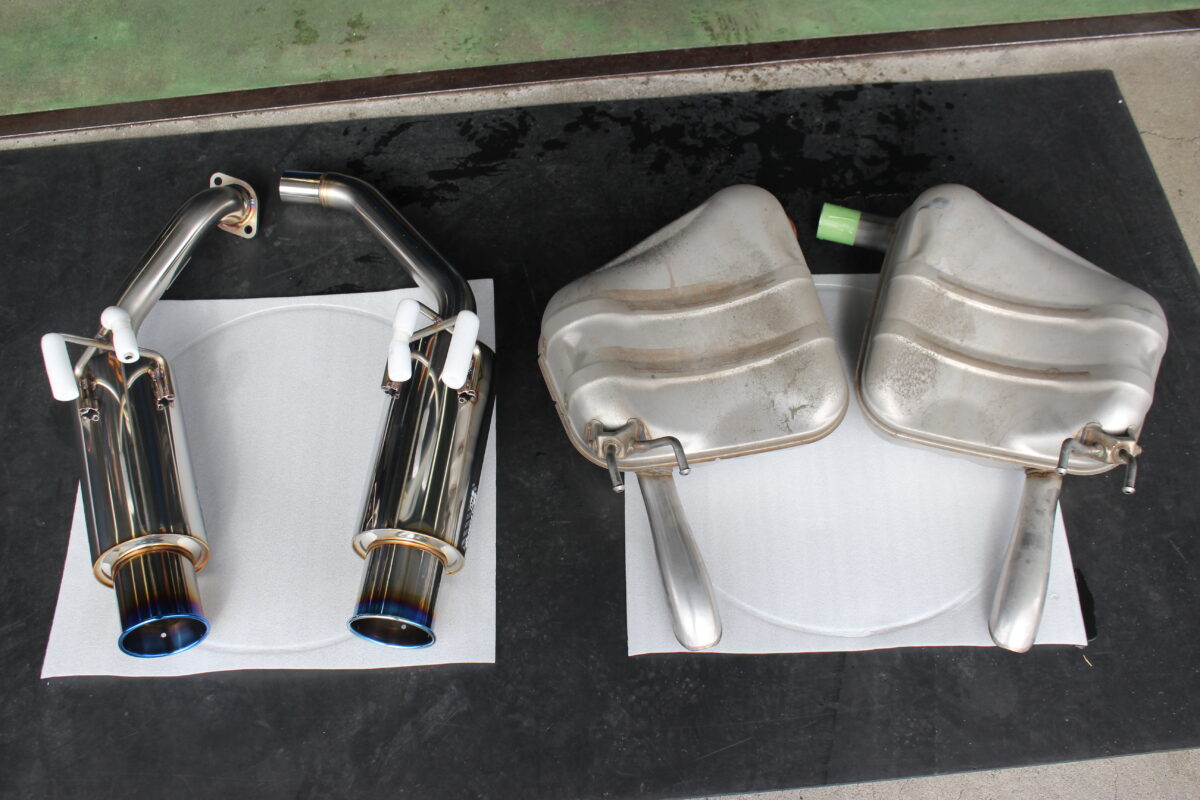 少しリアバンパーに隠れる形。これを柿本改マフラーに替えると、、、