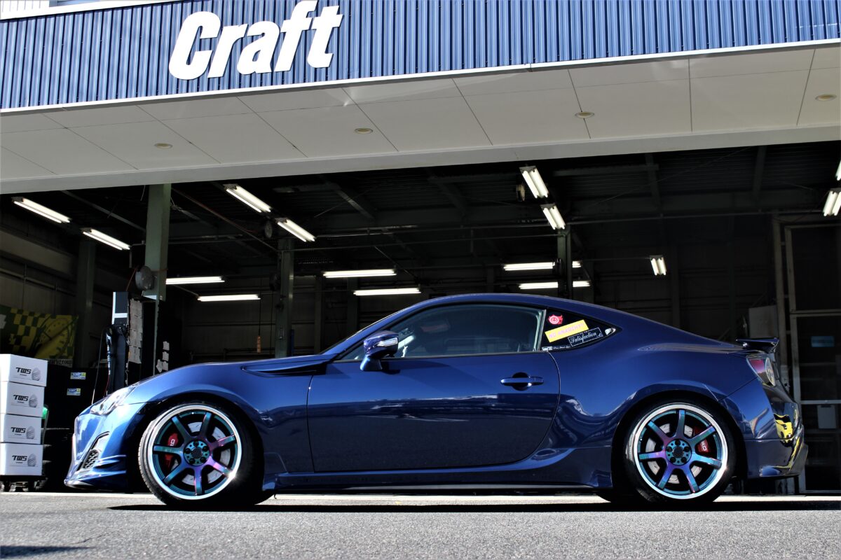 今回は86にチューナーサイズの装着!!前後9.5Jの太履き仕様!!