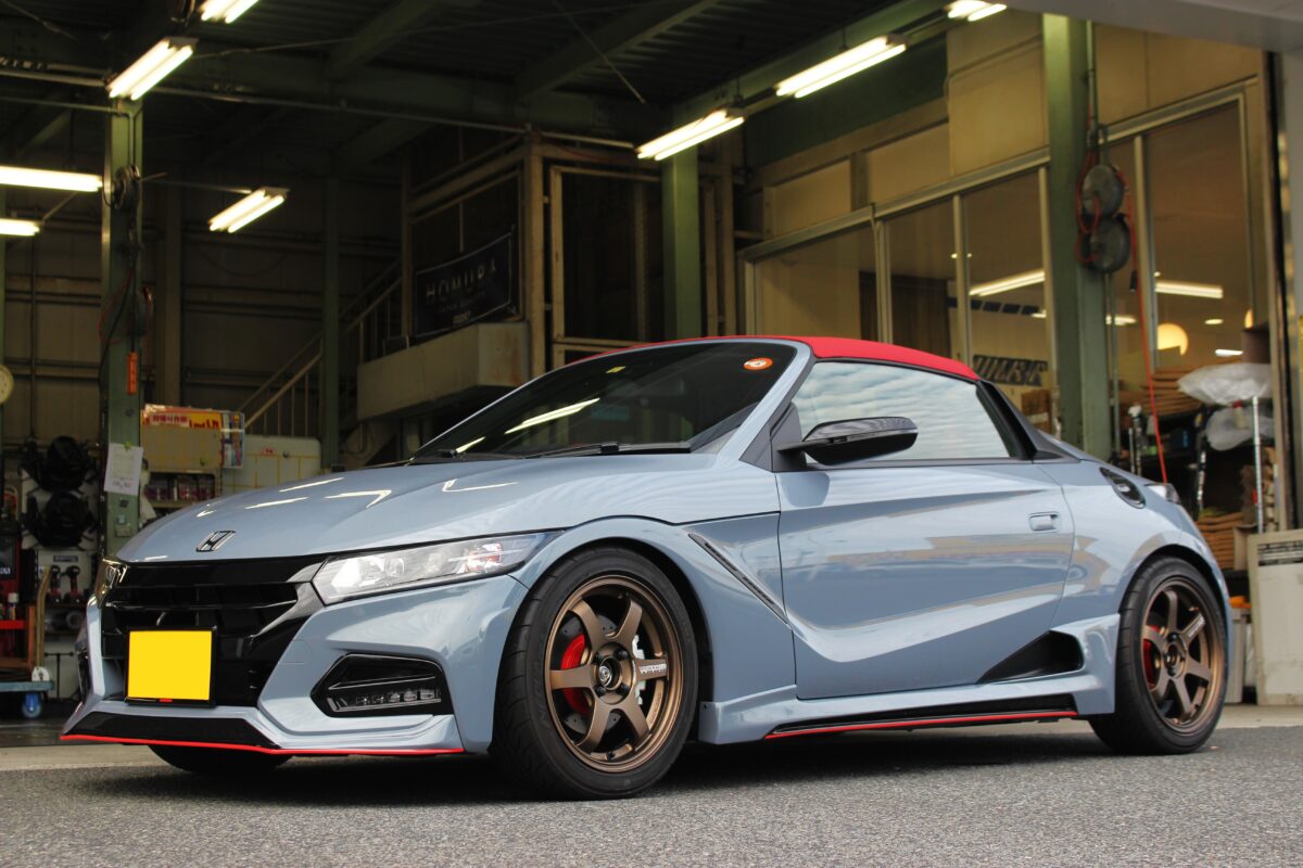 オプションカラーで魅せる!S660にエモーションZR10とスプーン N1マフラー、フレックスZでカスタム!