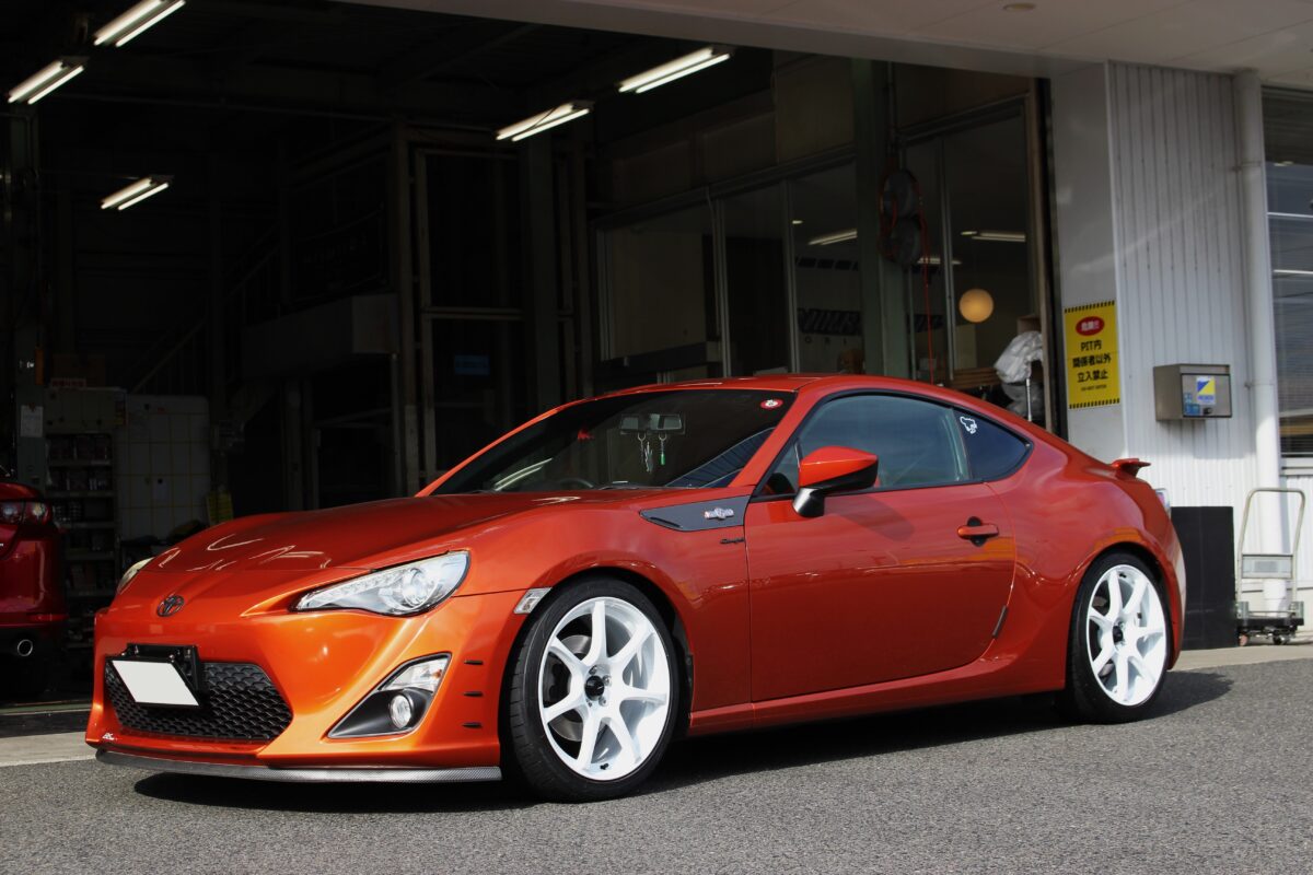 86を車高調でローダウン。TEIN FLEX-Zを装着。足回り2セット目のご用命も増えています。