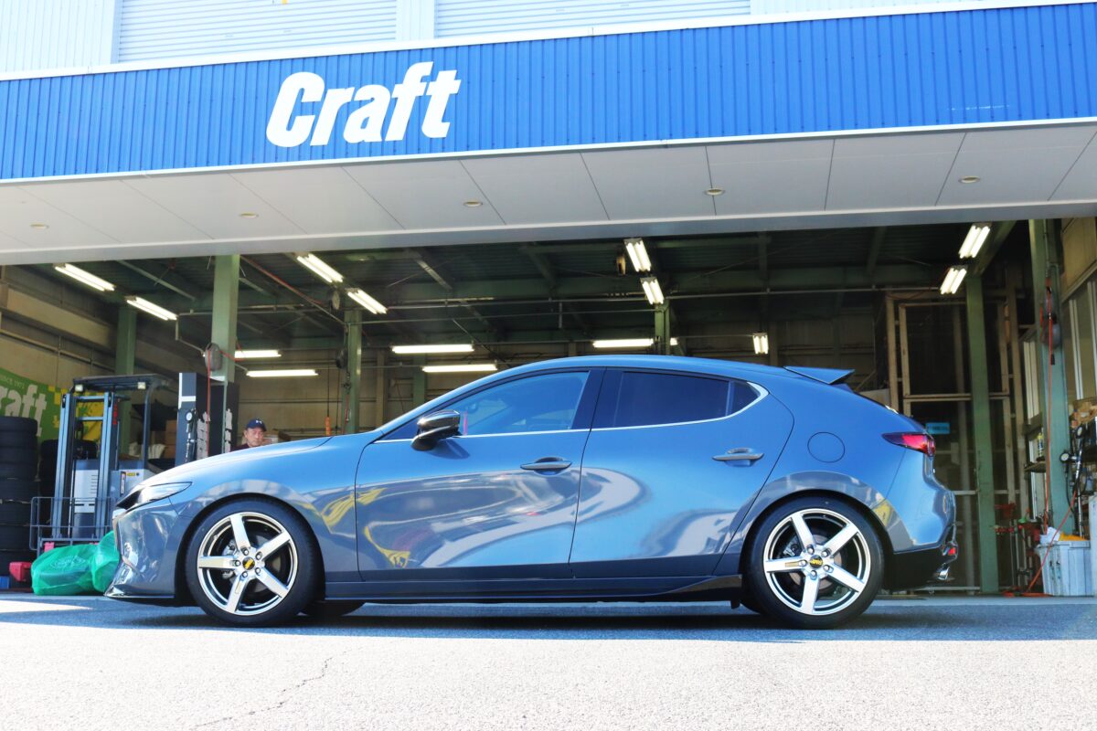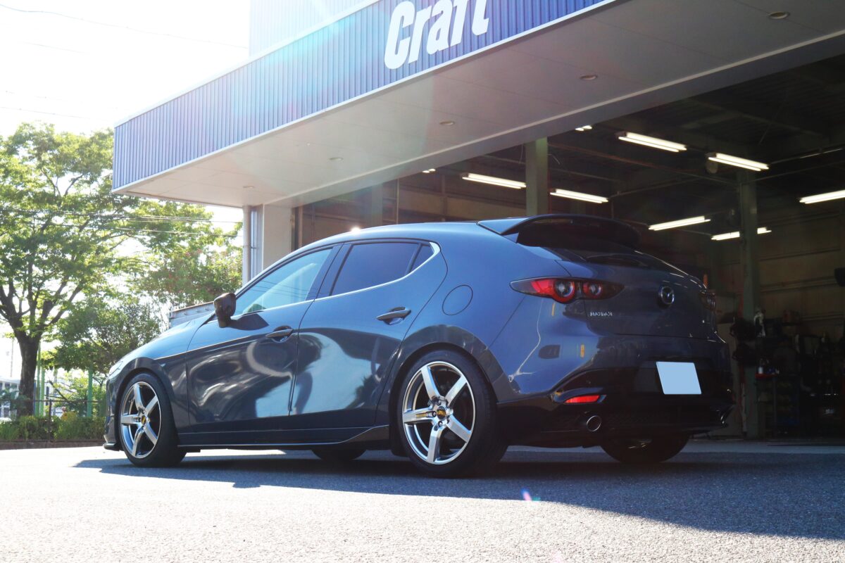 マツダ3ファストバックをTEINのフレックスZでローダウン!!更にMIDエクスクルーシブ050Fの18インチ装着。