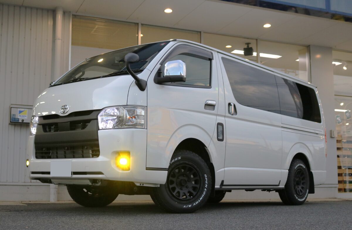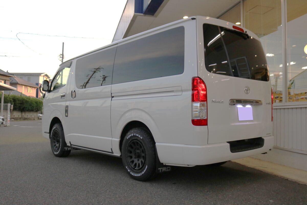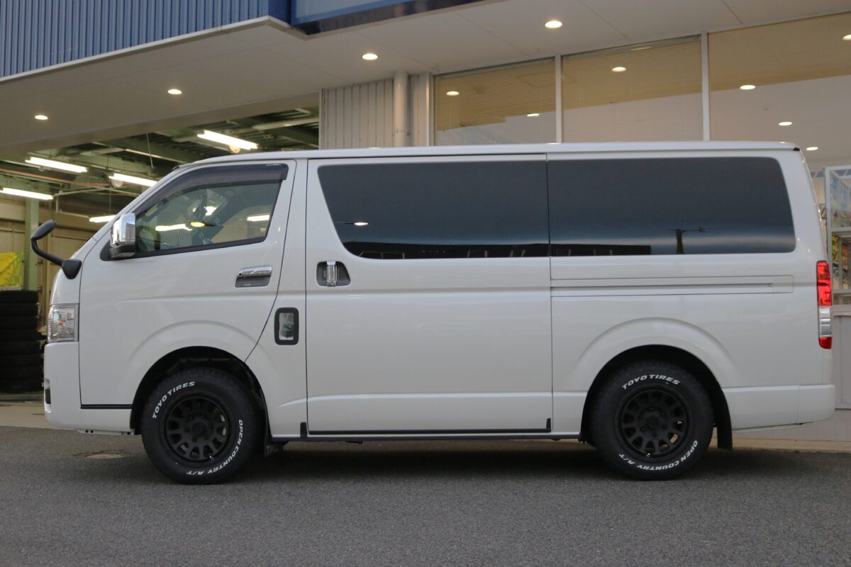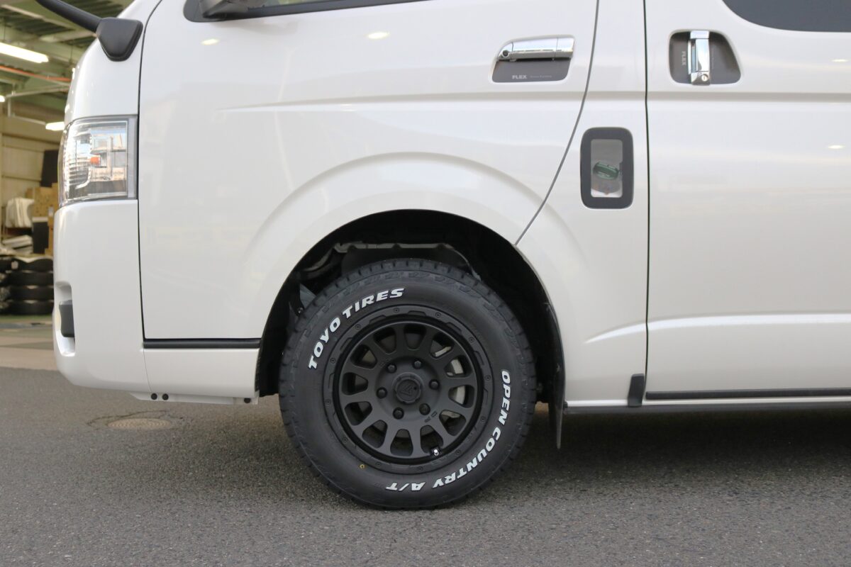 ハイエースにデルタフォースオーバルの16インチ、マットブラックカラーを装着。