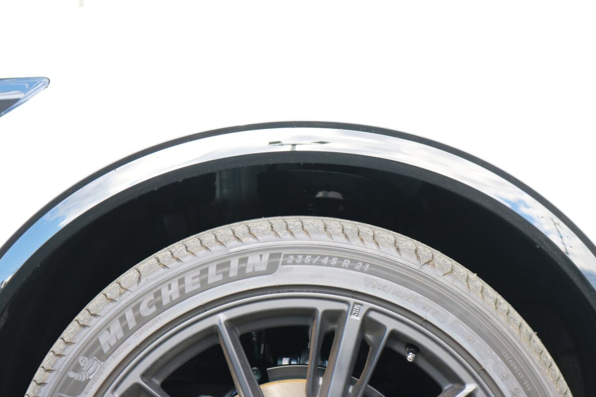 フェンダーアーチとタイヤのラインが美しく調和しています。