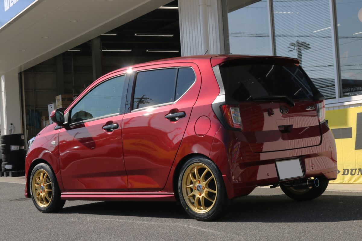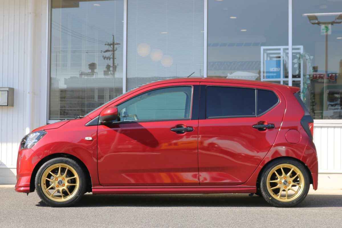 ホイール・ナットとこだわりを込めたミライースの完成形がコチラです。     こんにちは、クラフト一宮店です。   ミライースのオーナー様、 そして軽カーをカッコよく仕上げたい!という情熱をお持ちの皆様。   実は愛車の足元(ホイール)を変えるだけで、 驚くほどスポーティーに、そしてスタイリッシュに変貌するんです。   本日は拘りのエンケイホイールと、 細部まで徹底的に色を合わせたドレスアップ事例をご紹介します!     今回チョイスしたのは、日本が世界に誇るトップメーカー。 エンケイ・パフォーマンスラインシリーズの「PF01」です。   極限まで贅肉を削ぎ落としたスリムな5ツインスポークデザインは、まさに機能美の塊。 ミライースのようなコンパクトなボディに合わせることで、 クルマ全体がグッと引き締まり、まるで別の車種のようなスポーツカーのオーラが漂い始めます。     今回一番のコダワリは、なんといってもそのカラーリング。   赤いボディカラーに似合うのは何なのか、 自然且つカスタム色を出せる様店頭でしっかり吟味し お好みのカラー、且つ圧倒的な存在感を放つゴールドを選びました。     更に更に。 後日追加注文という形でナットにもコダワリを入れることに。   ホイールと同色のゴールドナットを組み合わせることで、 センター付近の密度感と高級感が一気にアップ。   とりあえず付けたのではなく、計算し尽くして選んだ というオーナー様のセンスが爆発しています。     ゴールドのPF01とキックス レデューラレーシング ゴールドナットの組み合わせは、 街中で振り返られること間違いなしの仕上がりです!   盗難防止のロックナットセットにもなっている為安心感もグッとアップしますよ。     店頭には他にもたくさんのホイールサンプルをご用意しております。 気になる方は、ぜひお気軽に遊びに来てくださいね!   管理番号:0042602211015