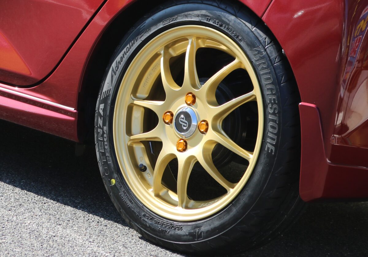 ホイールと同色のゴールドナットを組み合わせることで、