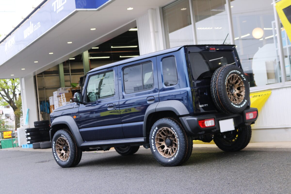 【ジムニーノマド】背面まで抜かりなし!マッドヴァンス08×オプカンAT3を「5本」装着で魅せる、完璧なオフ系スタイル。