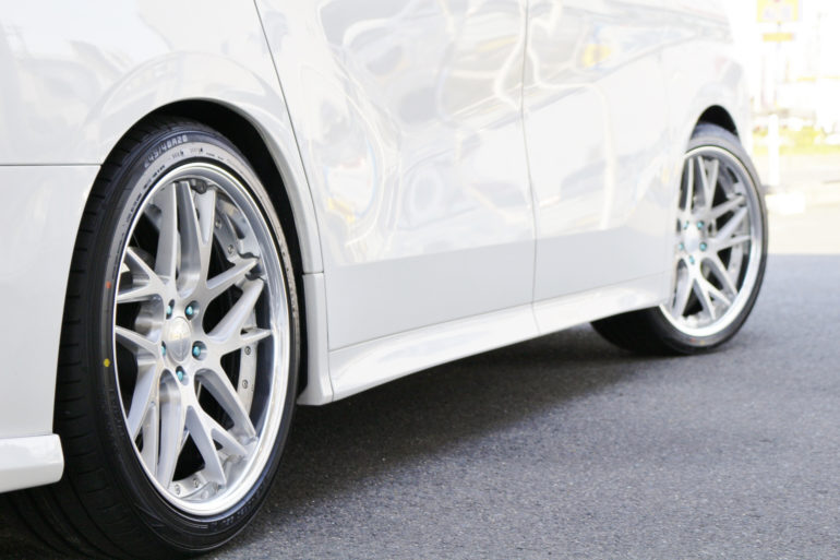 HKSの車高調でローダウン済みでしたのでお車を実車計測させて頂き客様と相談してmm単位でオーダーしました。