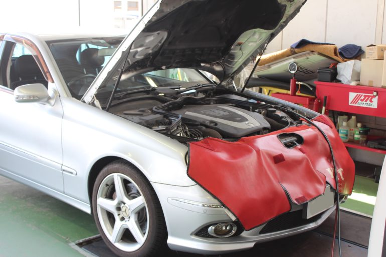 この日はメルセデスW211型Eクラスに施工いたしました。