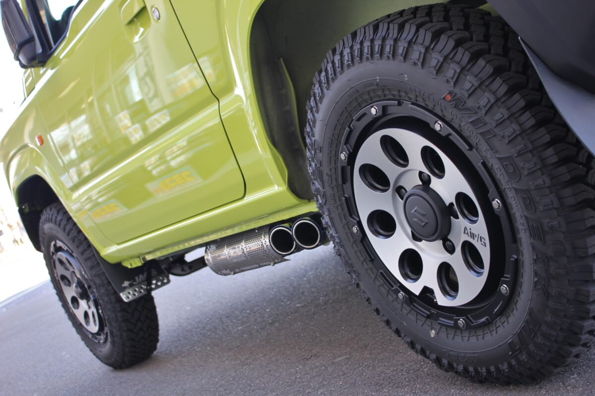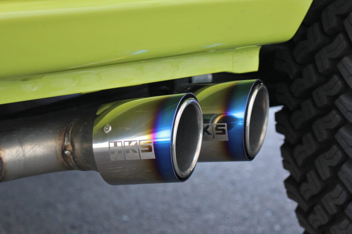 ■JB64ジムニーを期間限定展示中!HKSサイド出しマフラーのサウンドチェック可能です。