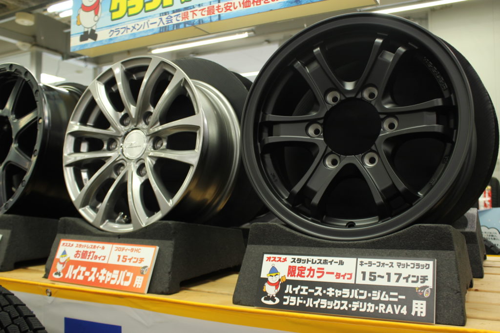 クラフトナゴヤドーム西店では普通車はもちろんSUV、四駆系のスタッドレスもご準備しております!