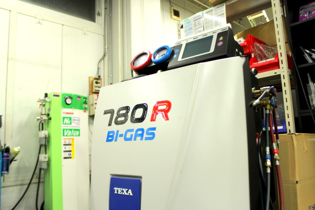 ナゴヤドーム西店に導入のTEXA780R は車のエアコンガスを全て回収しクリーニング後規定値に充填してくれる優れもの。