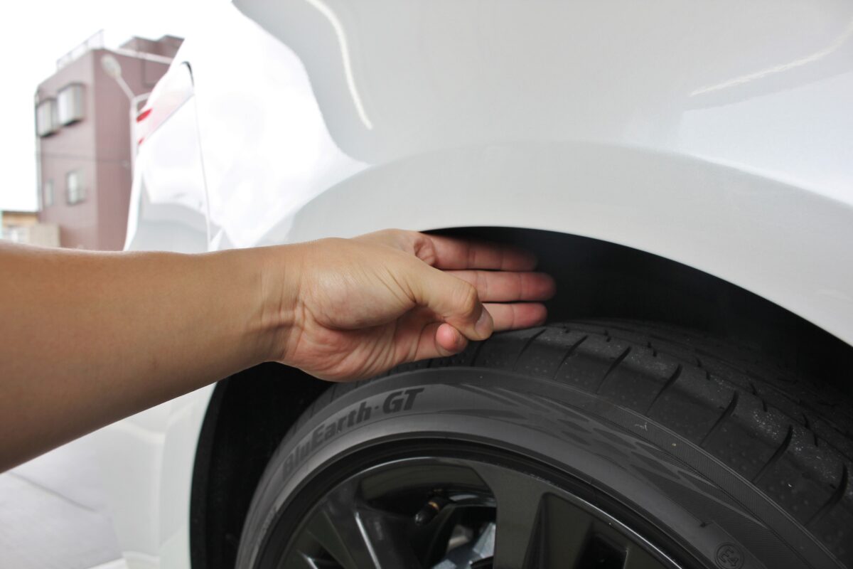 もともと低めなシルエットになった210系カローラですが、それでもフェンダークリアランスは、、、