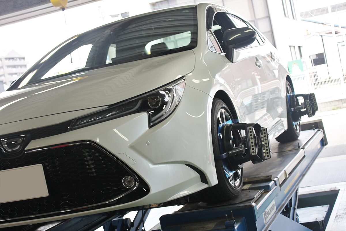 車高調の装着後は、その攻め攻めサイズを投入するためのアライメントセッティング。
