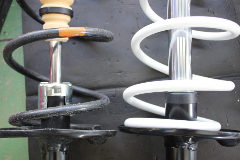 まずは車高から!ということでサスペンションを交換させていただきました。