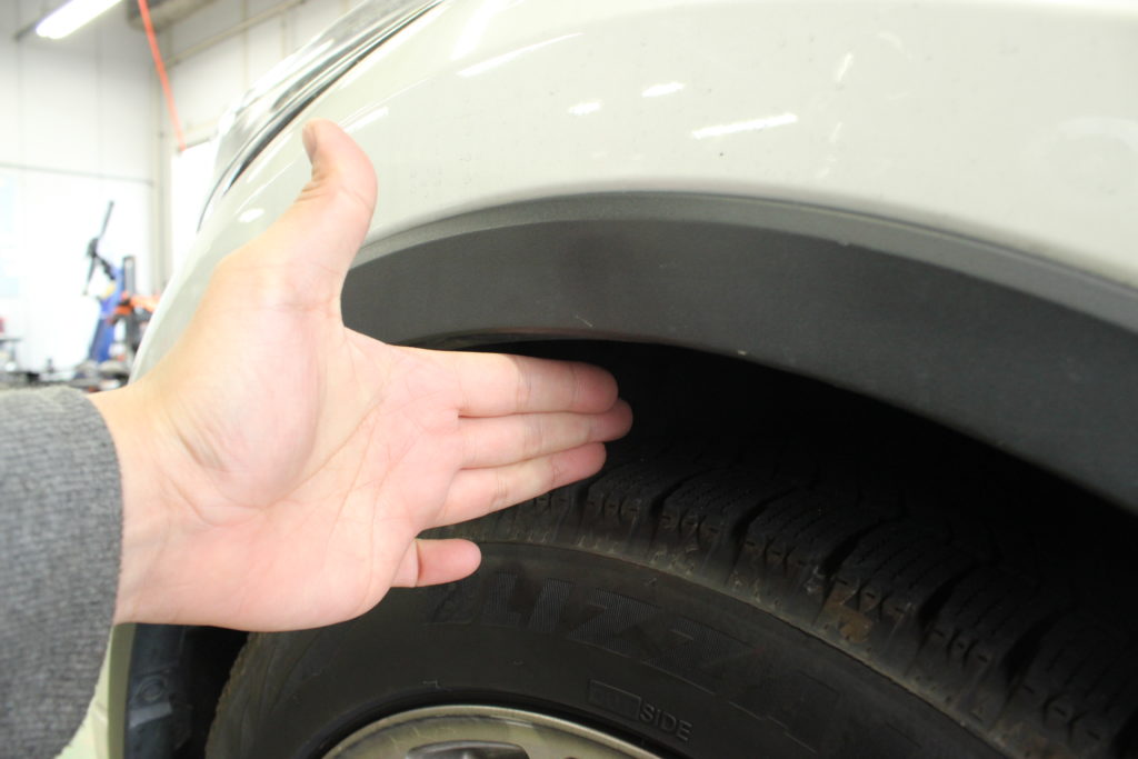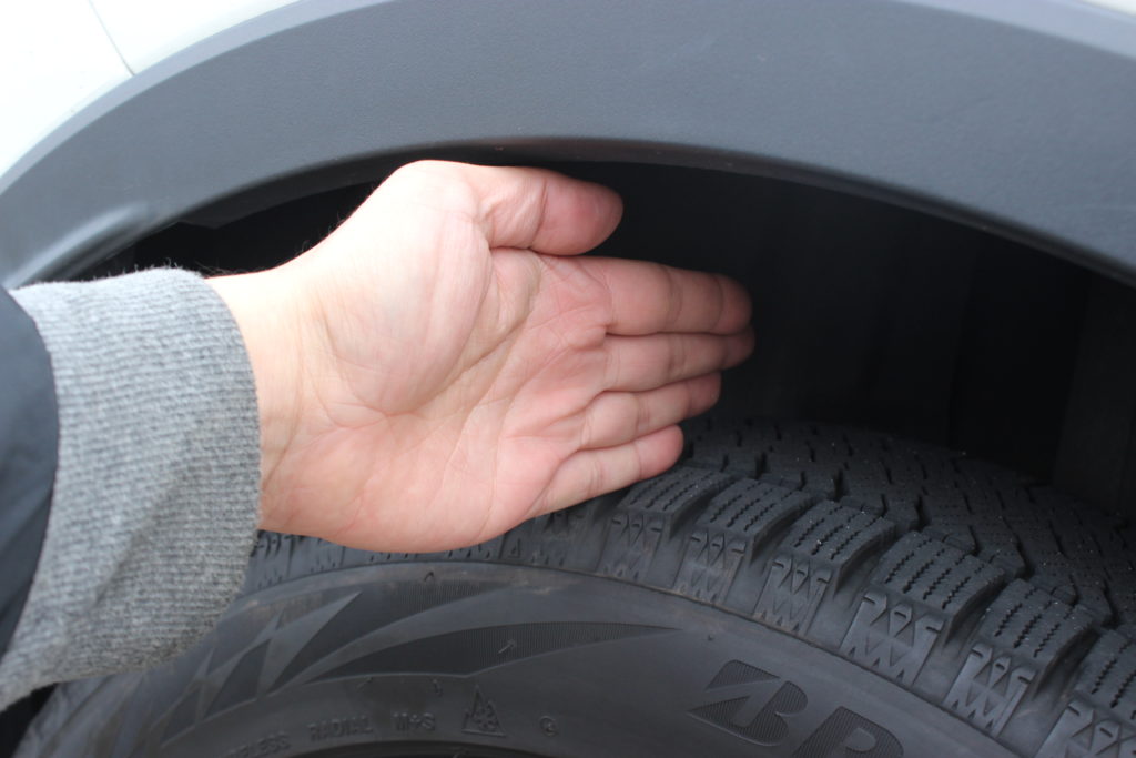 純正のフェンダークリアランスは約指三本。