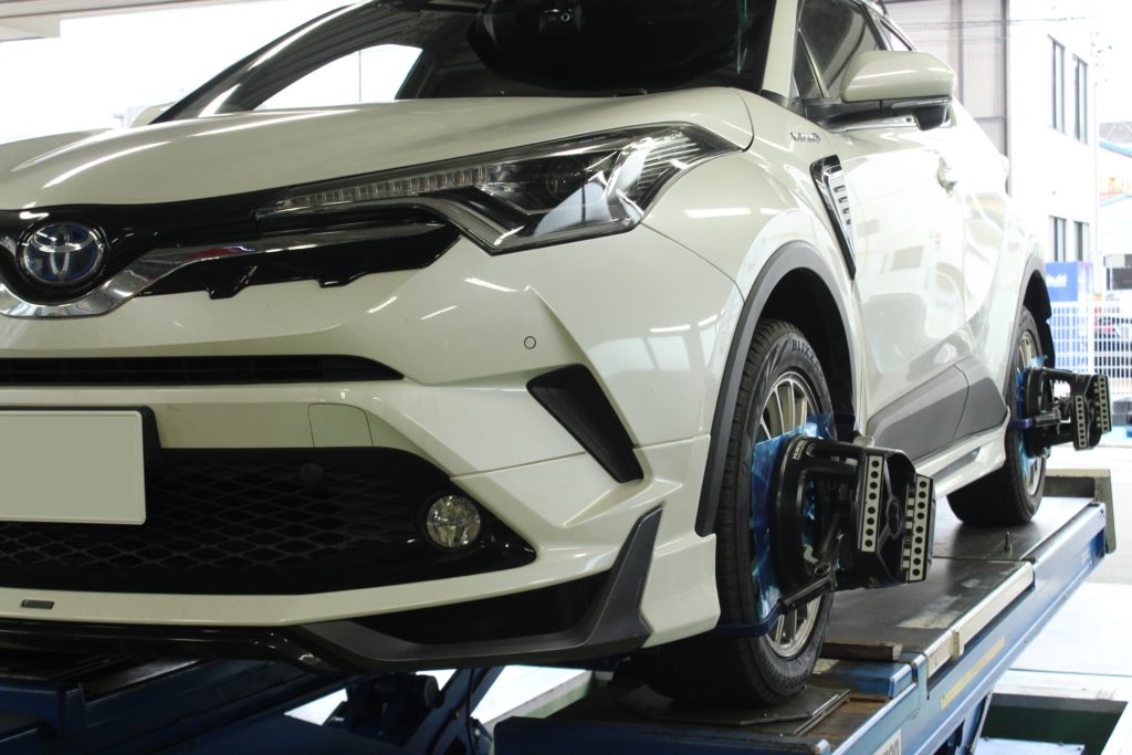 車高UP時もアライメントは狂ってしまいますのでしっかりと調整いたします。