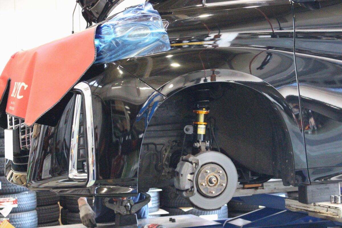 車高調等で足回りを完全にバラシての作業になるため、